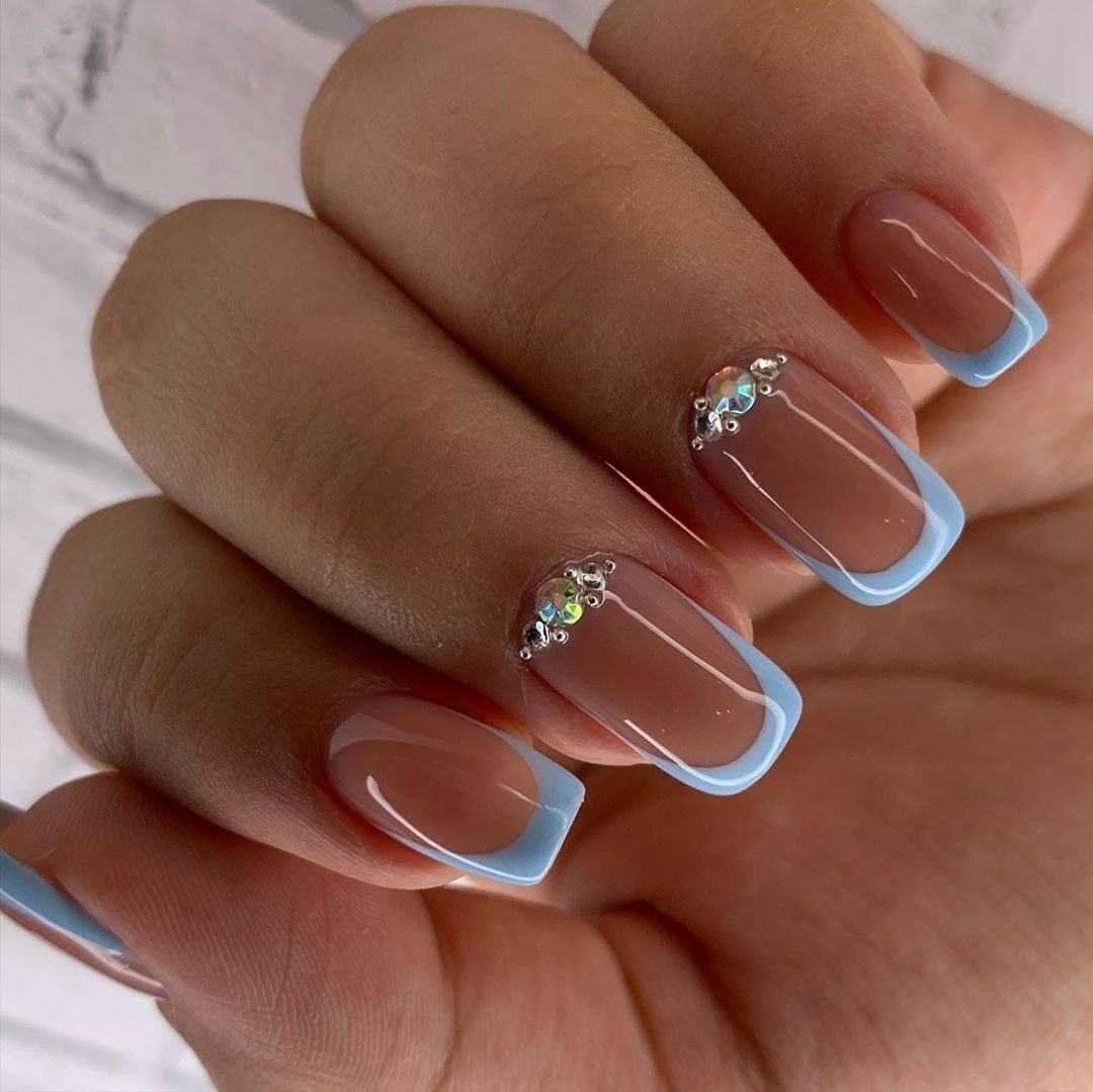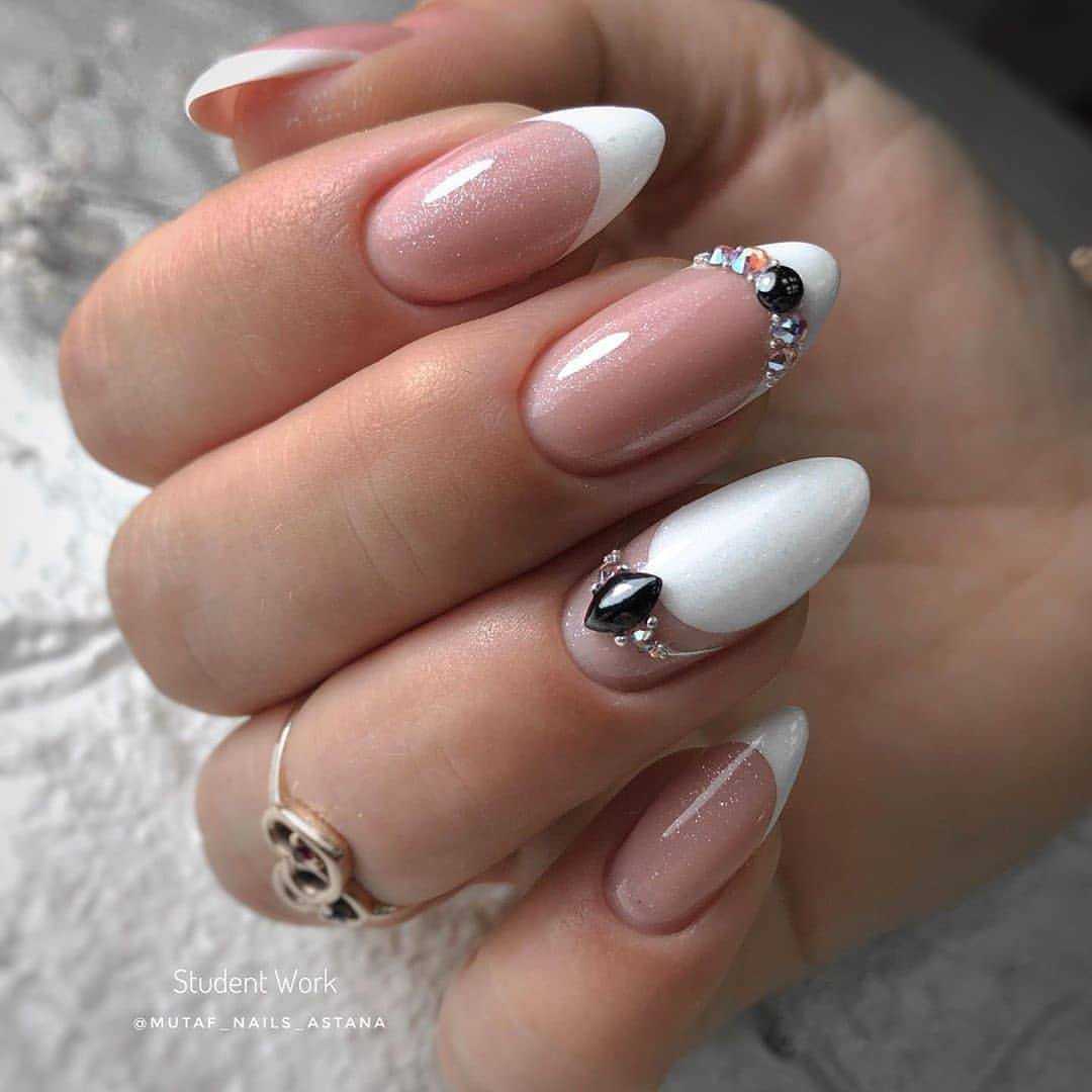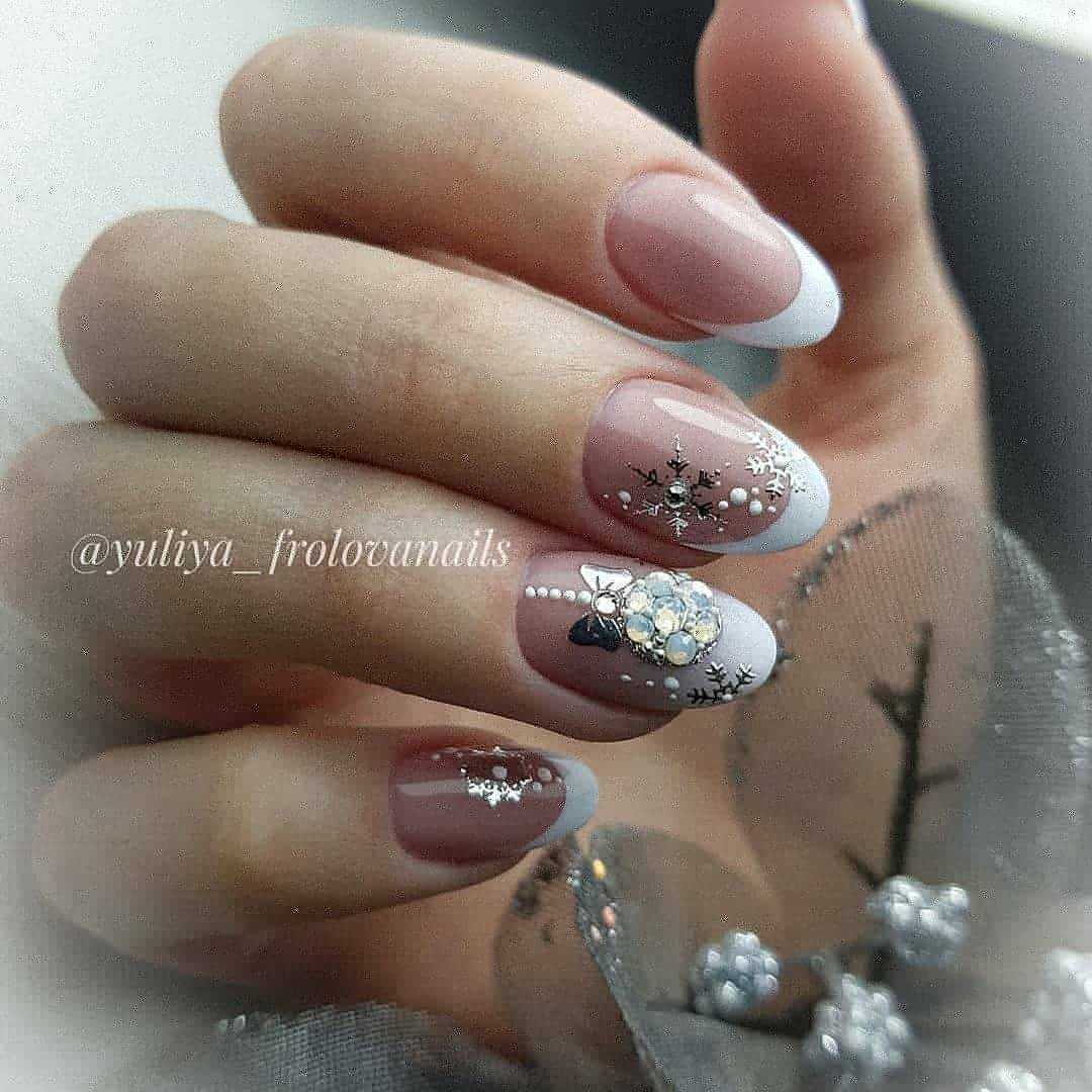 Френч – тот дизайн ногтей, который стерпит соседство с самым разнообразным декором. Именно стразы первые стали появляться во французском дизайне ногтей и удачно вписались в эту классическую технику маникюра.