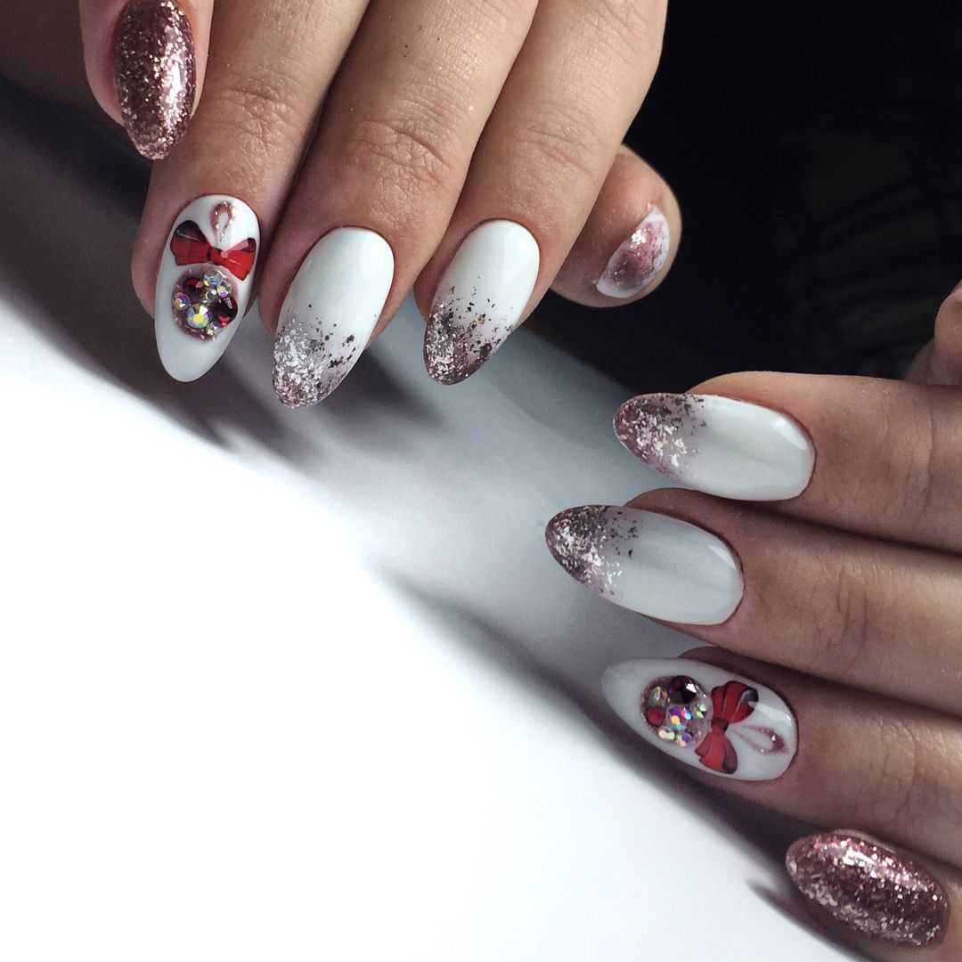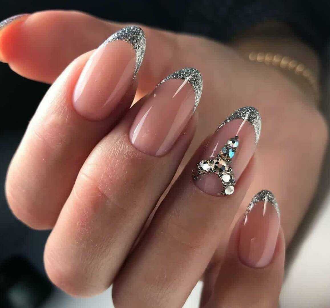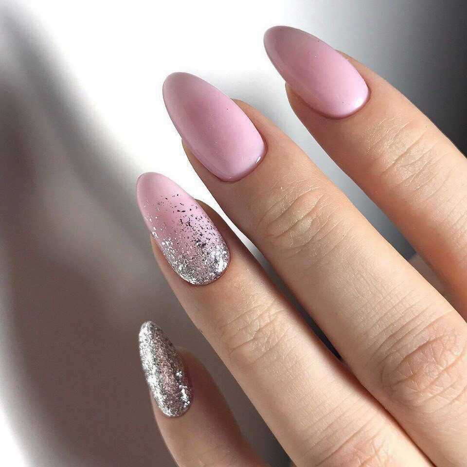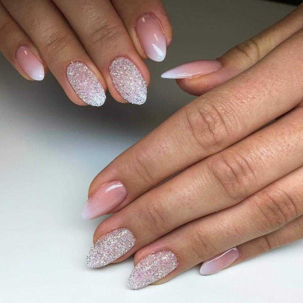 Овальный маникюр с блестками: особенности и разновидности декора 2020