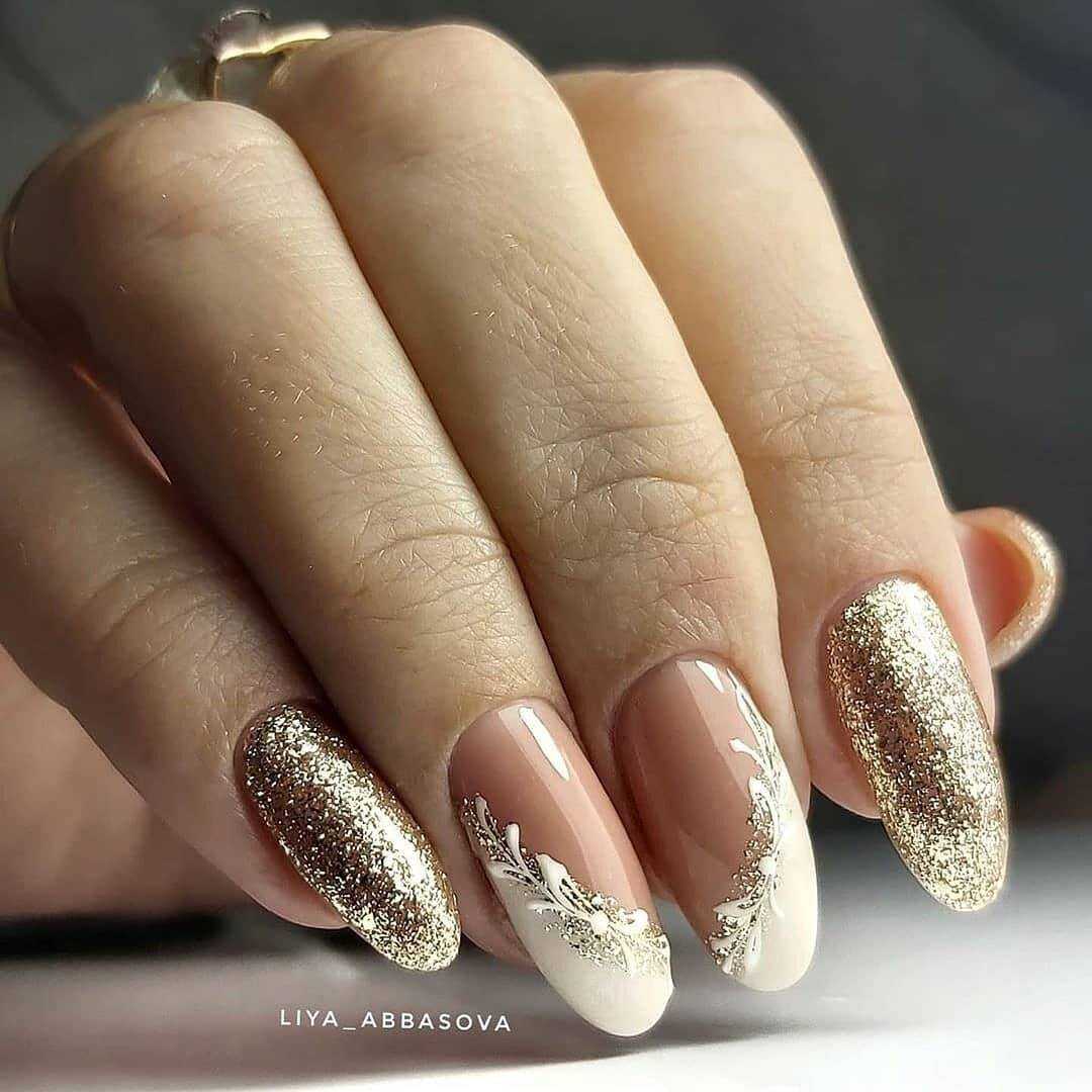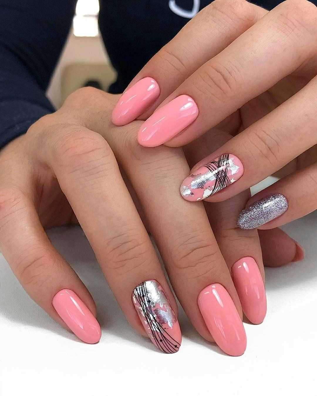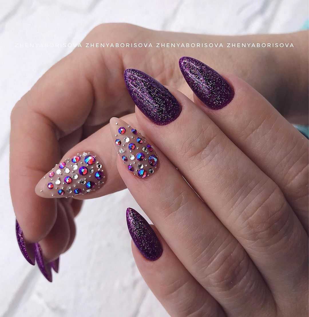 Овальный маникюр с блестками: особенности и разновидности декора 2020