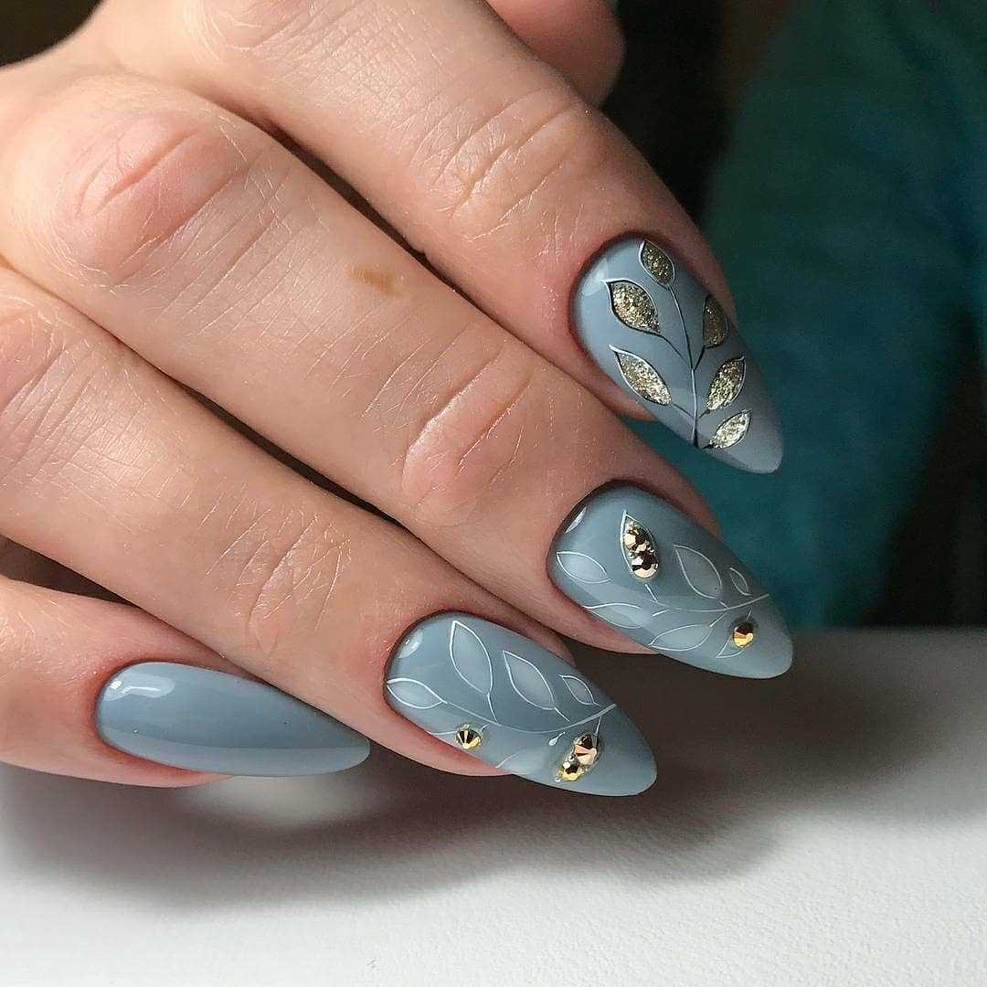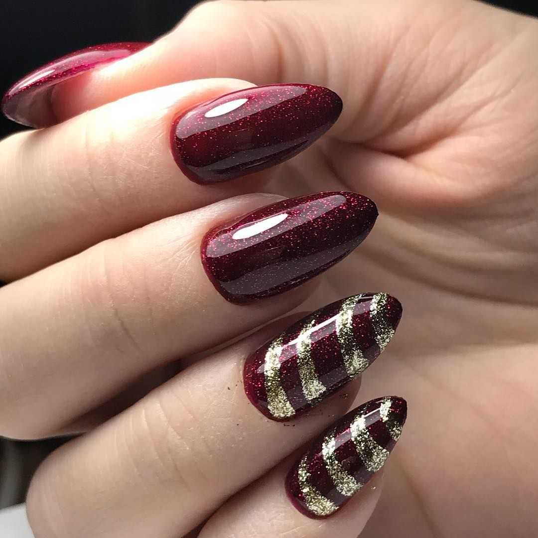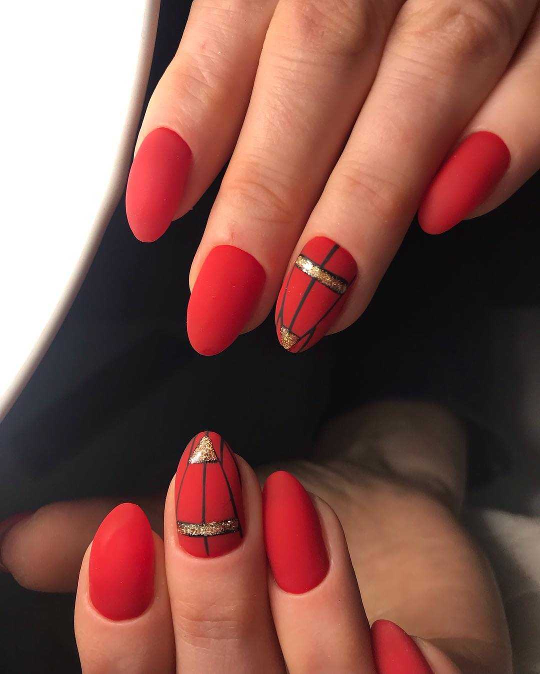 В 2020 году стоит присмотреться к геометрическому дизайну. Тонкие линии, фигуры и точки – все это можно использовать для создания бесчисленного количества рисунков на любой вкус. К тому же, многое зависит от техники нанесения. В домашних условиях использовать кисти не всегда удобно. Выбирайте стемпинг для симметричности. С помощью блесток можно подчеркнуть одну-две линии, что сделает дизайн чуть более ярким.