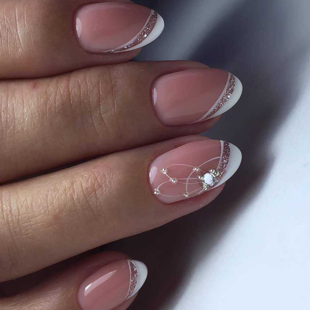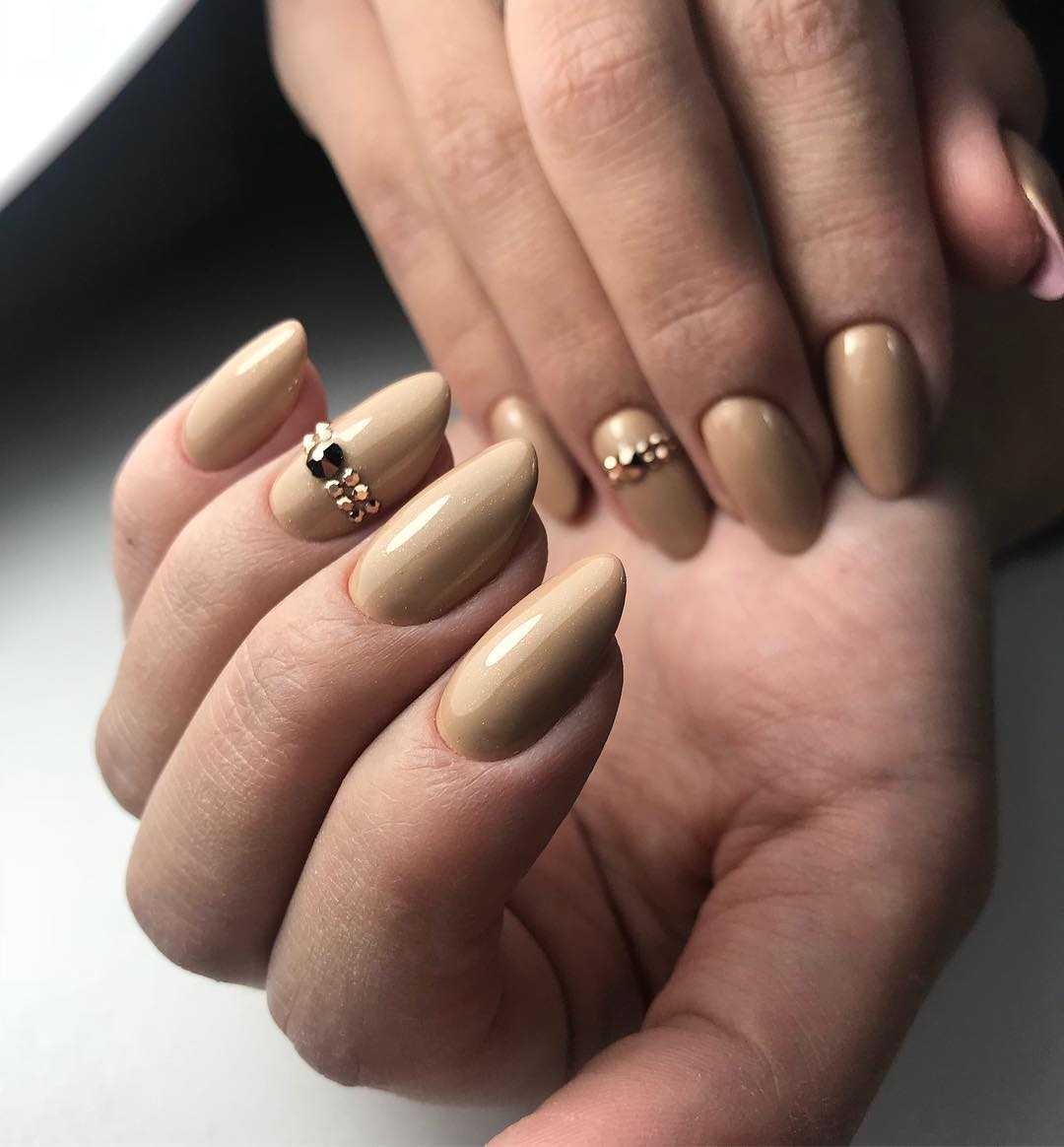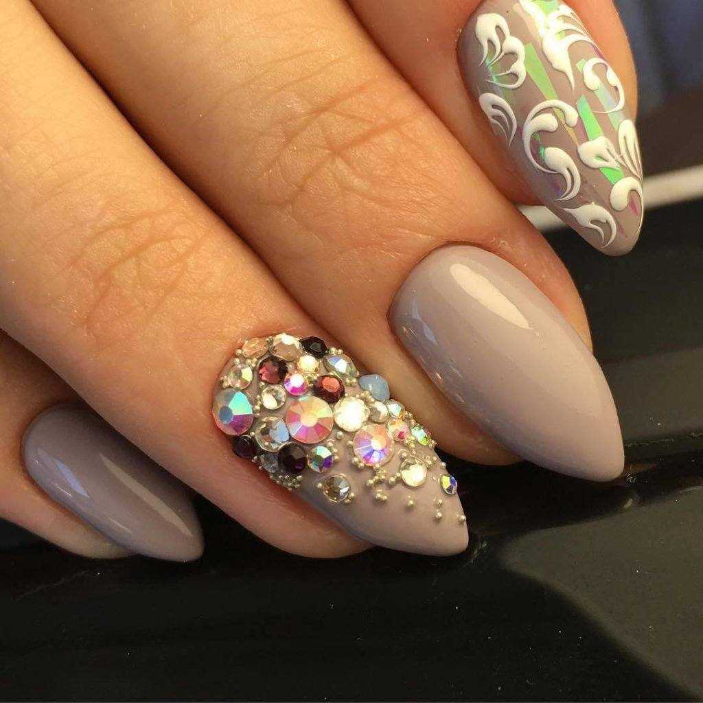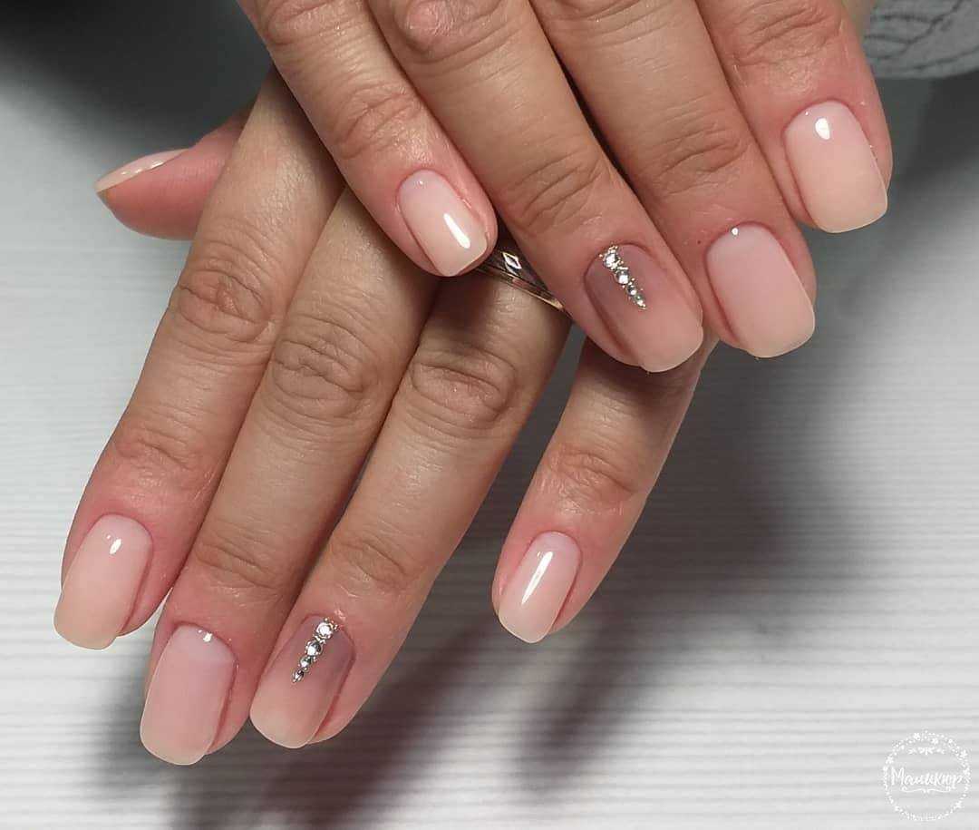 Стильные варианты оформления маникюра беж со стразами и блёстками