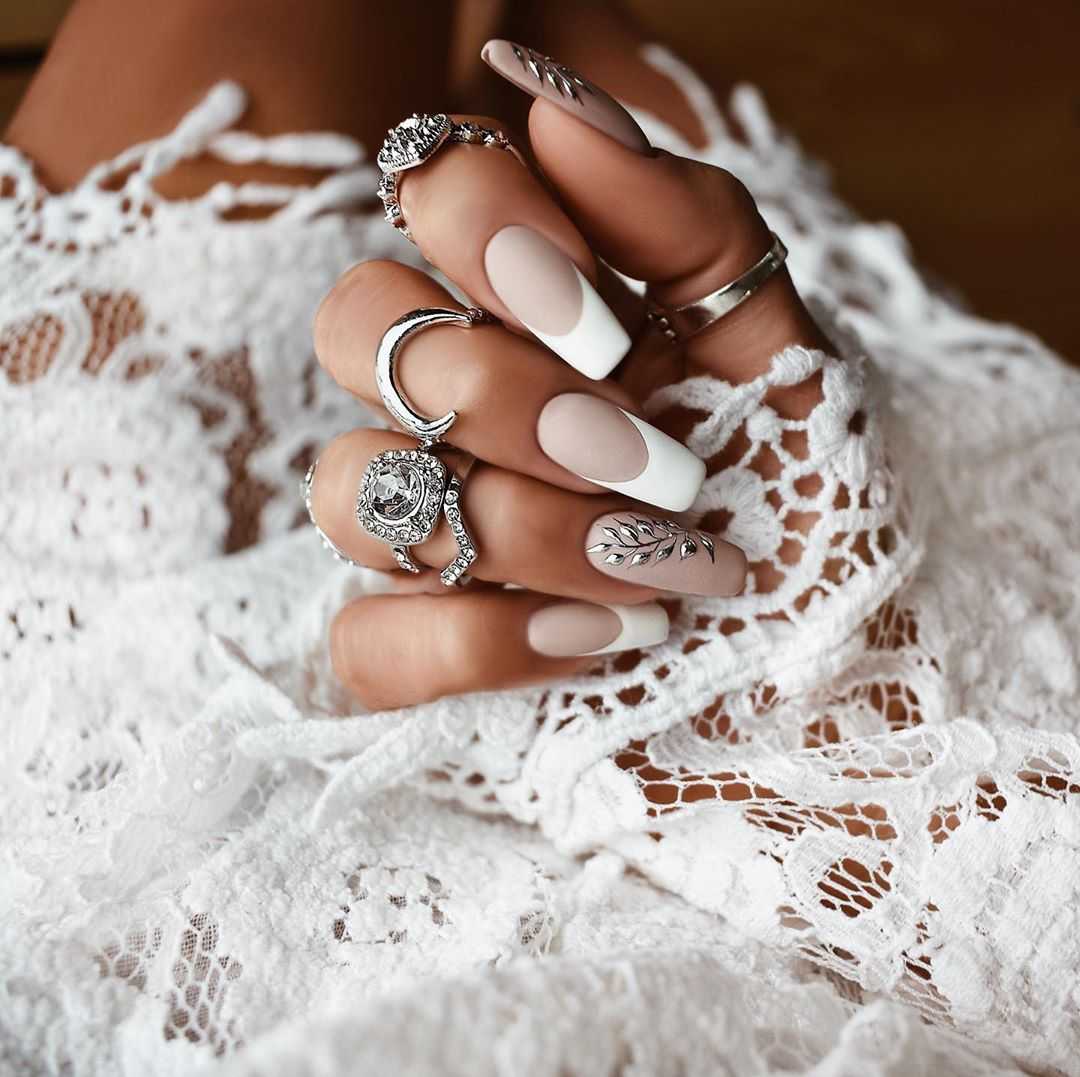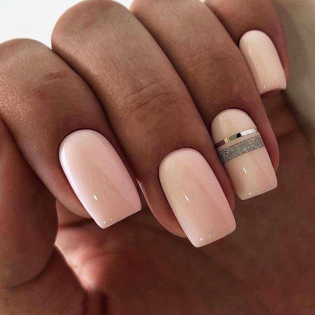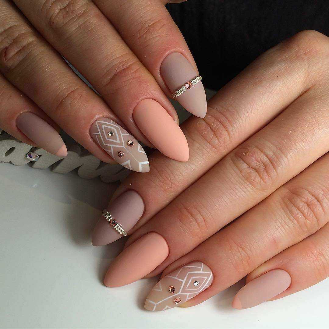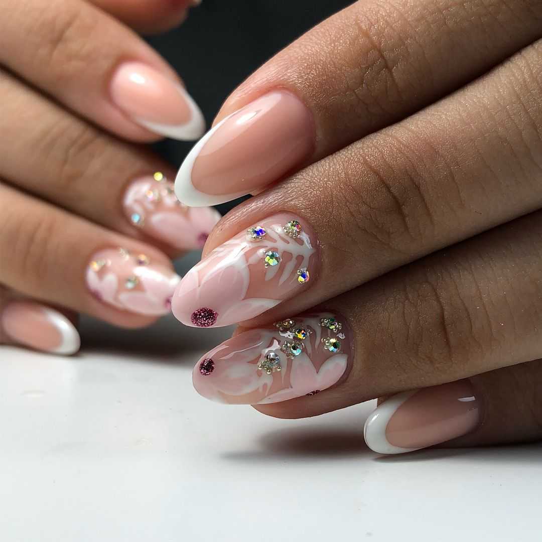 Стильные варианты оформления маникюра беж со стразами и блёстками
