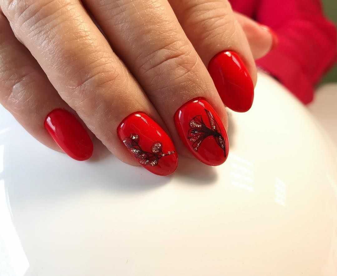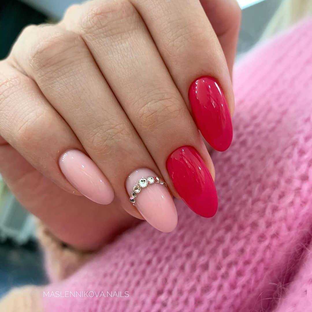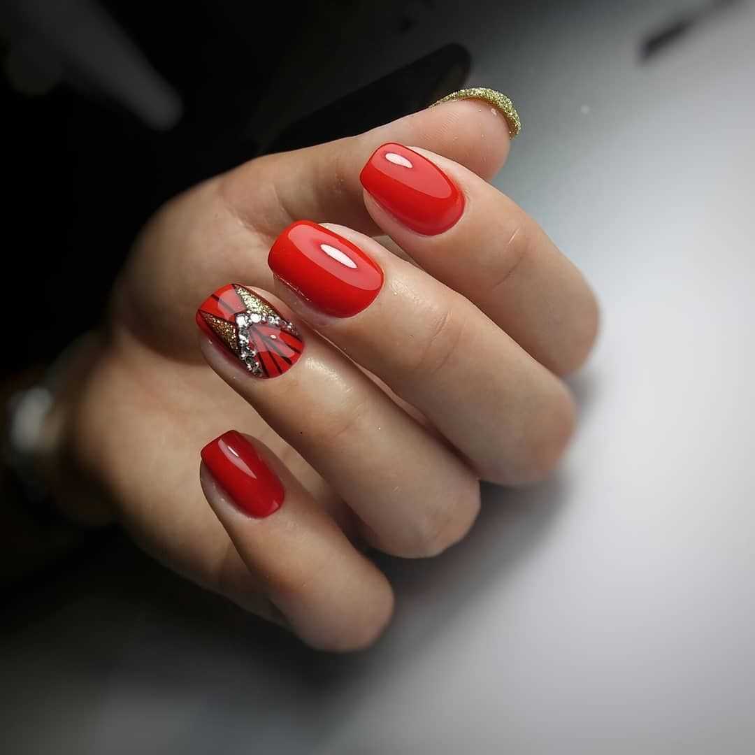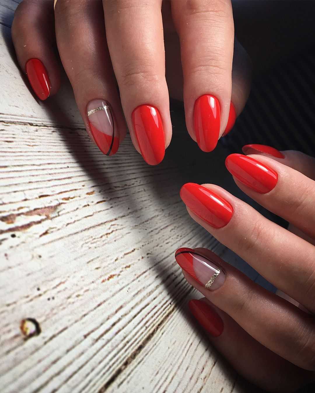 Для восхитительного светлого дизайна можно дополнить сияющим декором пастельный нейл-арт. Также отлично будет смотреться яркое покрытие, дополненное фольгой или сверкающей пудрой. Например, можно выбрать насыщенный красный, который будет одним из трендов 2021 года.