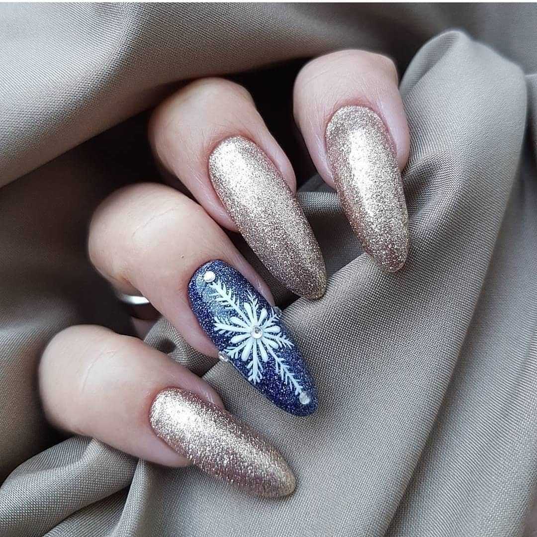 Особенно активно блестки используются в тематическом новогоднем оформлении ногтей. Больше всего девушки предпочитают рисунки в виде снежинок, елочек, подарков и другого. При желании можно украсить их блестками или использовать их в качестве основного фона. Все зависит от их яркости и плотности нанесения.