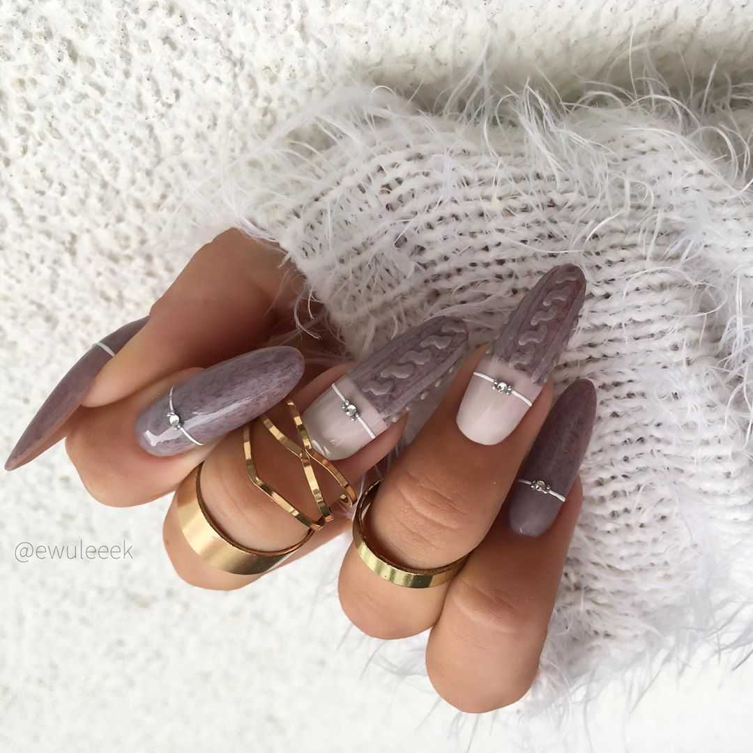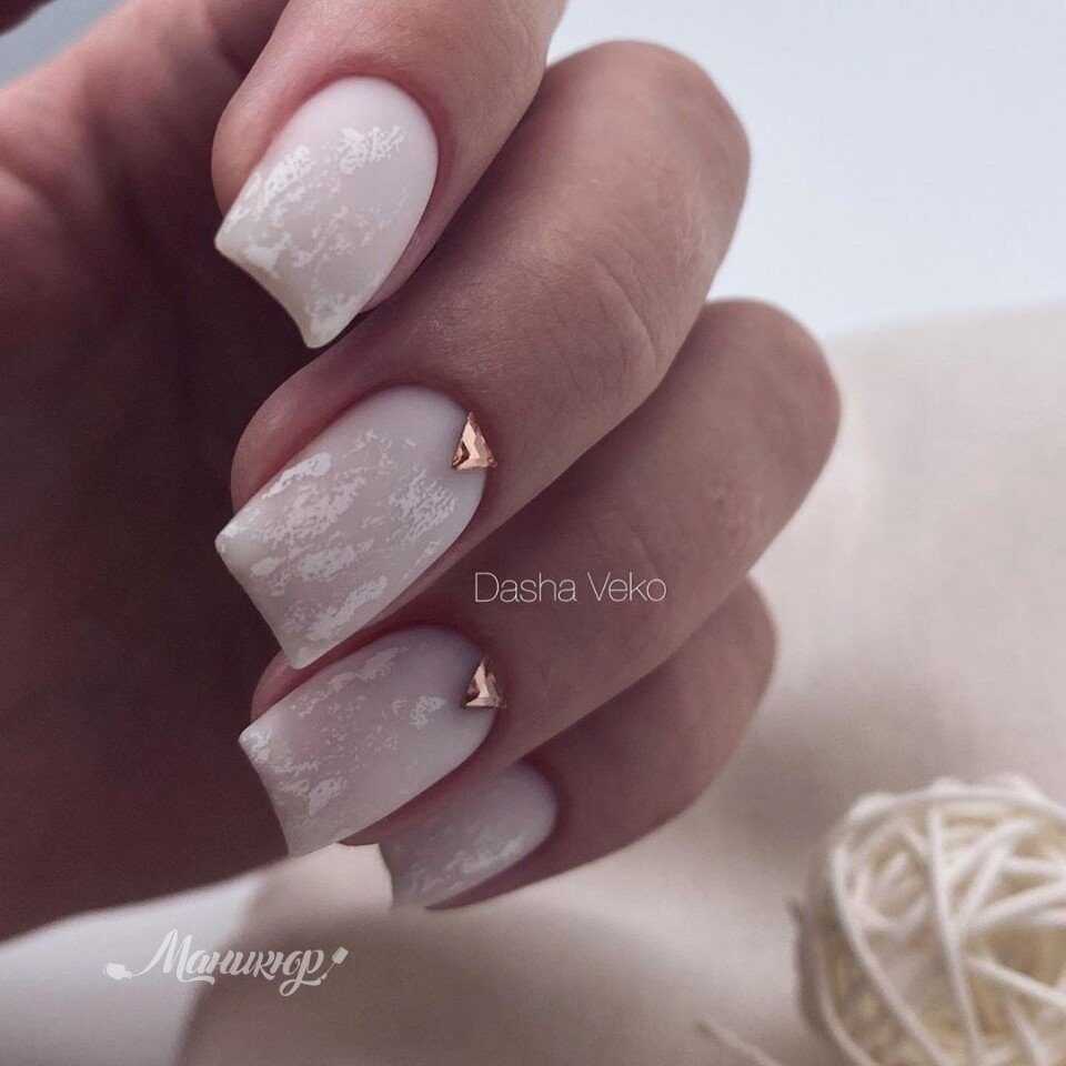 Маникюр с узорами натуральных камней — сдержанный и стильный, поэтому он отлично гармонирует с любым блестящим декором. Дизайн не теряет свои позиции уже несколько лет подряд. Его дополняют матовым покрытием, втиркой и другими эффектами.