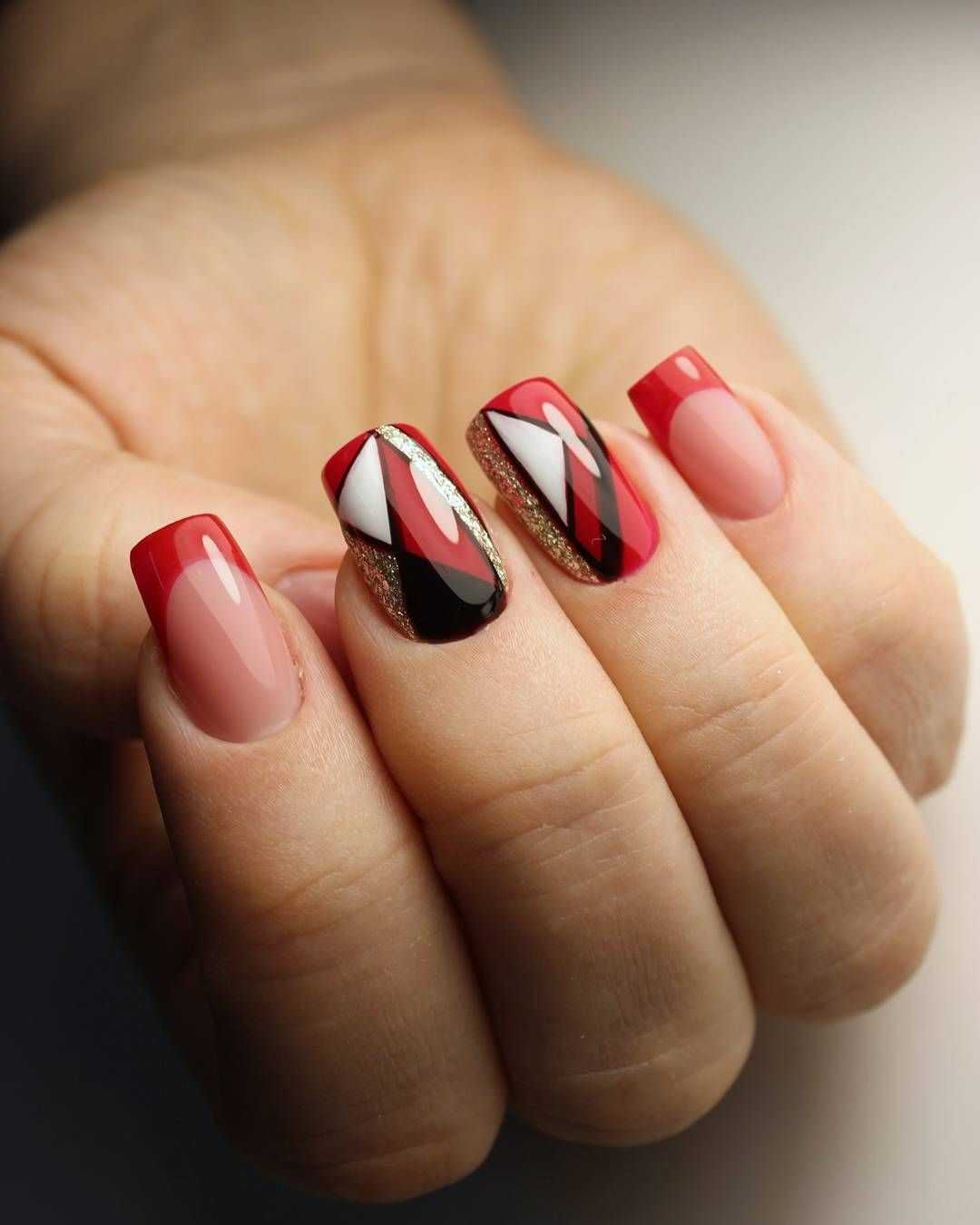 Не менее прекрасно смотрится геометрический и абстрактный дизайн. Вместе с блестками он буквально преображает на глазах и смотрится совершенно по-новому. Но обратите внимание на то, что декора не должно быть слишком много. Ведь главное, чтобы маникюр смотрелся гармонично.