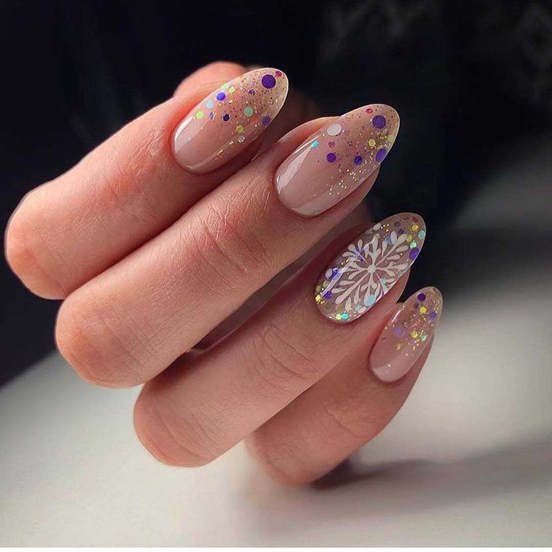 Современный маникюр овальной формы с декором в виде блесток уже стал универсальным. Данный декор идеально подходит не только для праздничных образов, но и для внесения разнообразия в повседневность. Тем более, что существует безграничное количество вариантов оформления для каждой модницы.