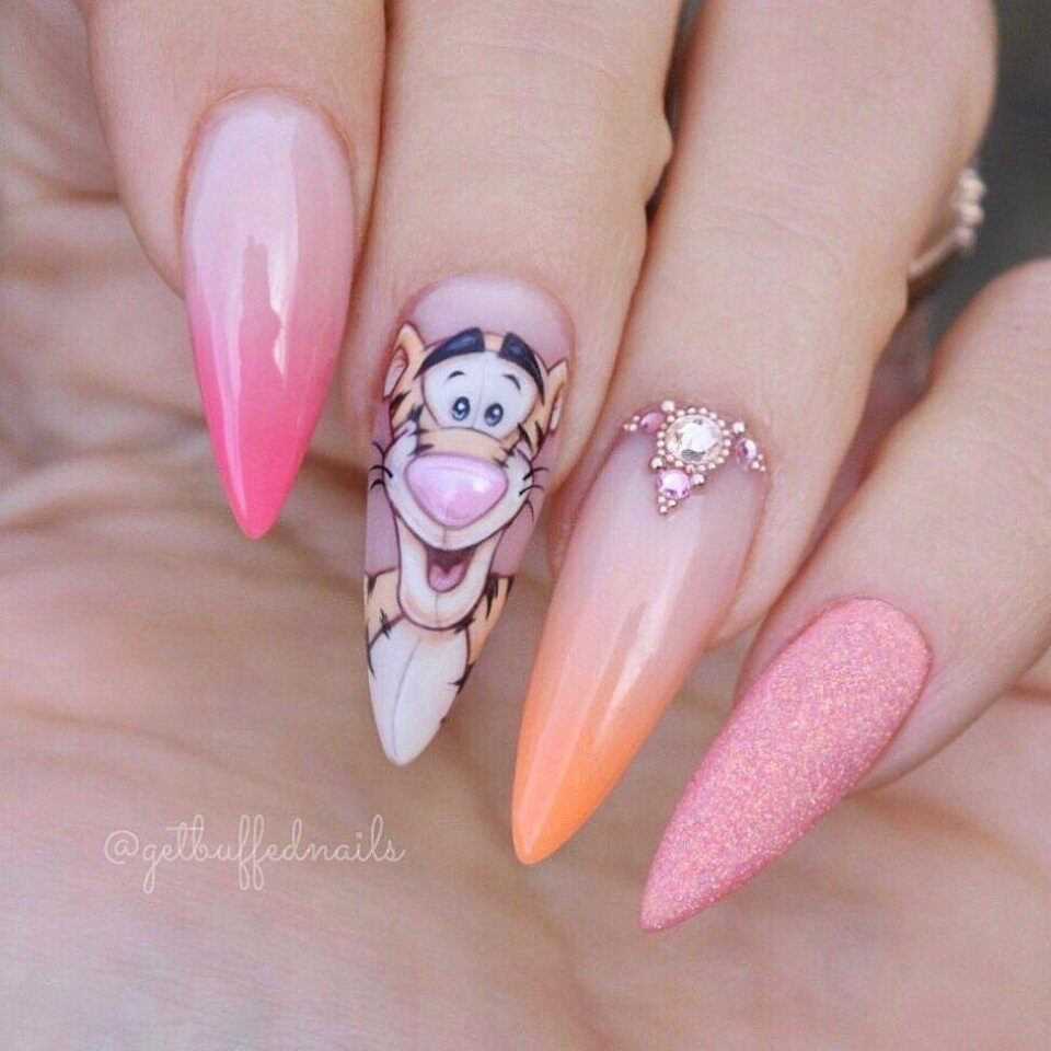 Совет: ногти разной длины зрительно сделает одинаковым абстрактный рисунок.