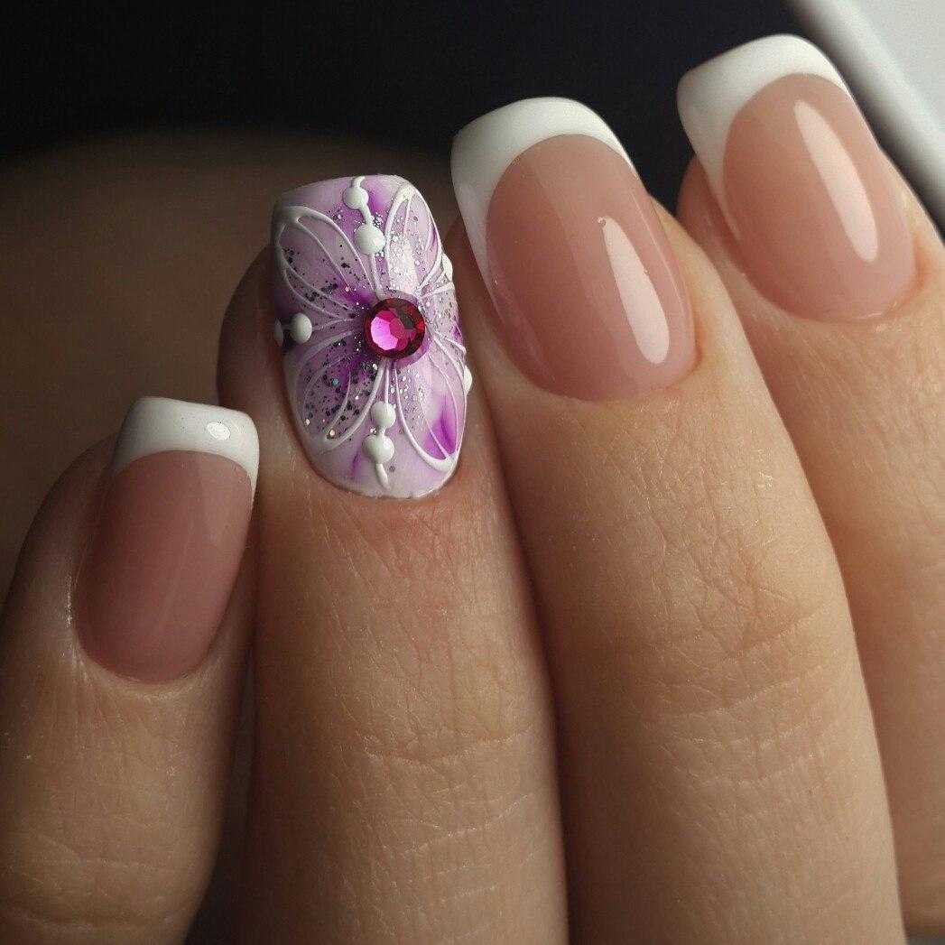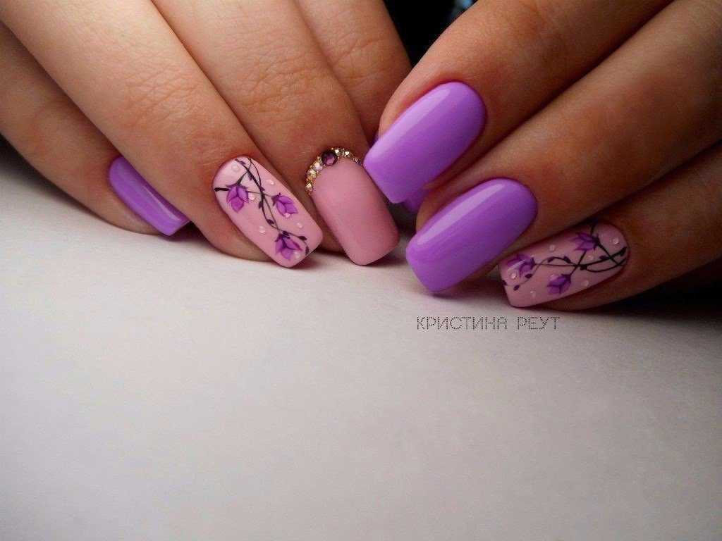 На сегодняшний день существует огромное число вариантов цветочного дизайна на ногтях. Разнообразие цветов позволяет экспериментировать. Проявляя творческий подход, мастера маникюра создают полноценные цветочные композиции, которые подчеркивают романтичность и индивидуальность женской натуры. Любой, даже самый простенький цветочный изгиб способен визуально удлинить ногти, срезанные под самый корень. Поскольку, трендовый цвет 2018 года – сиреневый, то и цветы, выполненные в этих оттенках, будут актуальны. Модные фиолетовые тона прекрасно сочетаются с розовым, коралловым и зеленым, потому цветочные вариации в маникюре не имеют границ. Но, почему бы в 2018 году не сделать акцент на натуральности, естественности и в качестве базового покрытия взять нюдовый лак? А уже только потом нанести оригинальный цветочный рисунок. Цветочная лепка на ногтях все также востребована, ибо нет ничего лучше и популярней для свадебного торжества, нежели французский маникюр с белыми цветочками из полимерной глины. Цветочная тематика модного и стильного маникюра 2018 года раскрывается в полной мере на фото, представленных далее.