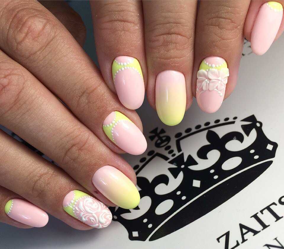 Настроение обязательно подарит хорошая погода и красивый маникюр. Если хотите, чтобы солнечными лучами засветились женские глаза, разлился нежный румянец и на ногтях засиял мягкий перламутр, то создавайте актуальные образы 2018 года, в которых неотъемлемой частью является идеальный маникюр. Нежные оттенки лакового покрытия позволяют достичь невероятного результата при создании модного маникюра для стильных женщин. Милый нейл-арт в розовых, бежевых, светло-желтых оттенках указывает на женственную чуткость и хрупкость, которую так ценят мужчины.