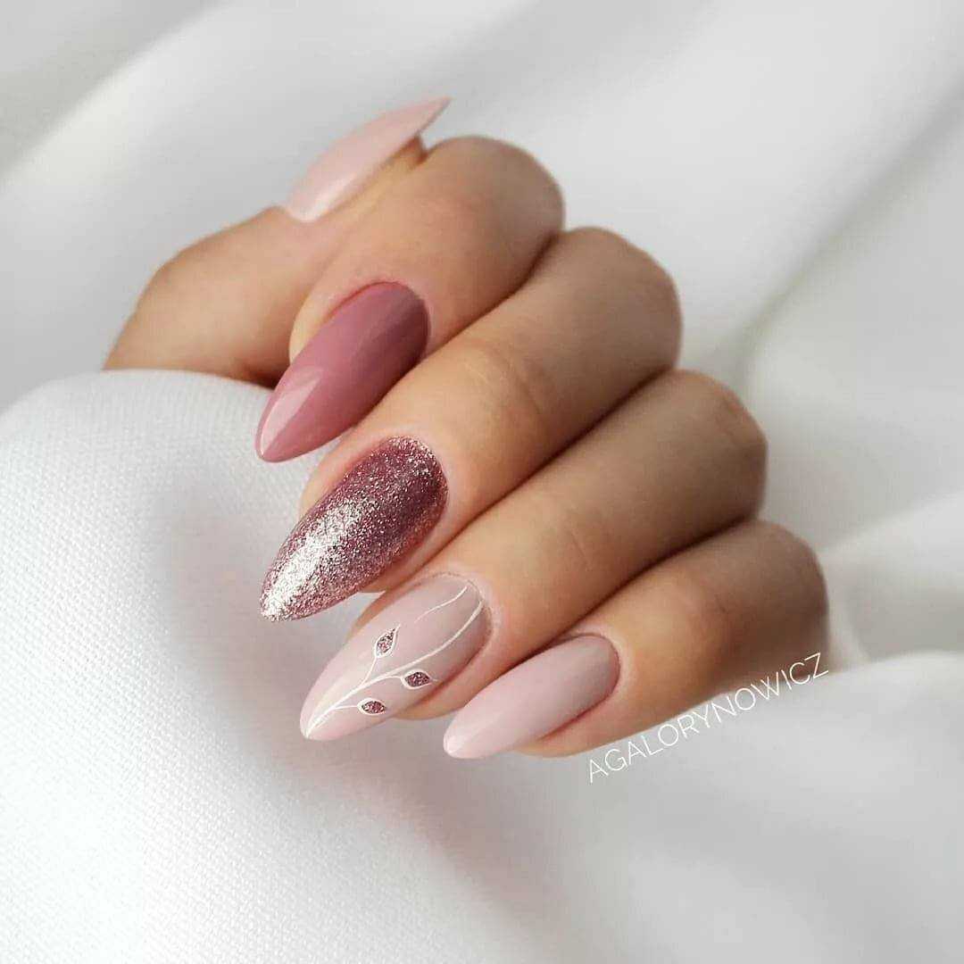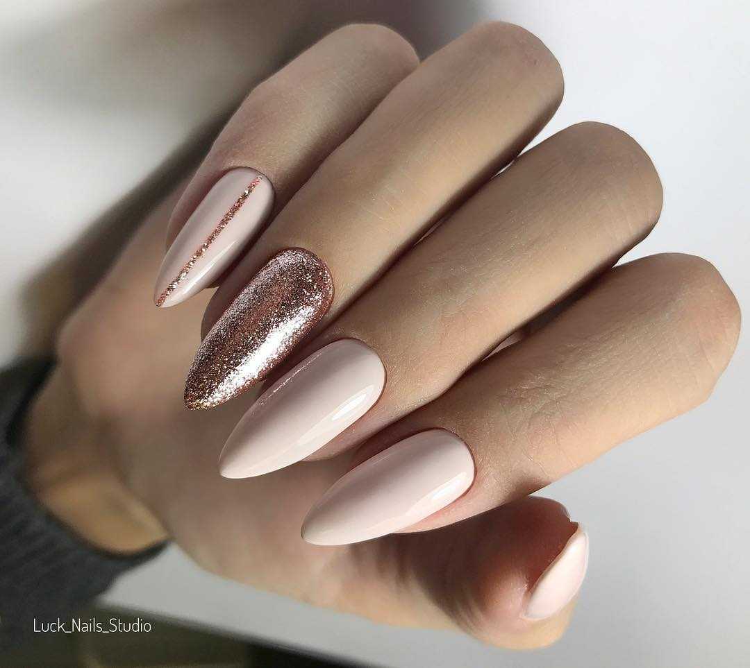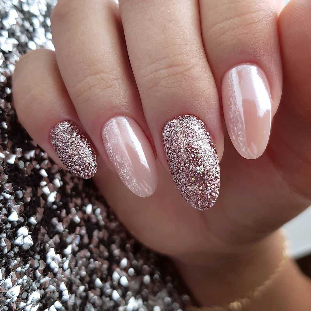 #2 Нюдовый маникюр с блестками на миндальные ногти