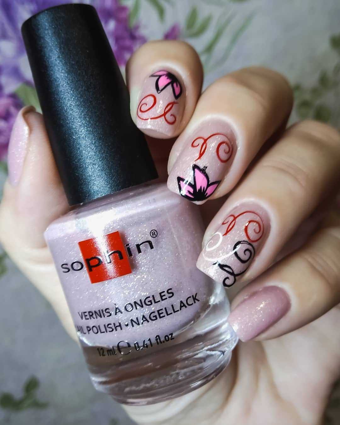 - Создание узоров из матового цветного топа на глянцевом розовом или бежевом фоне