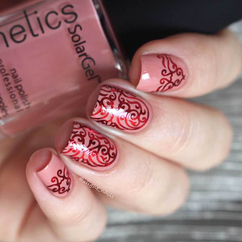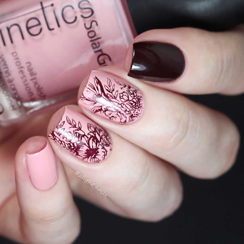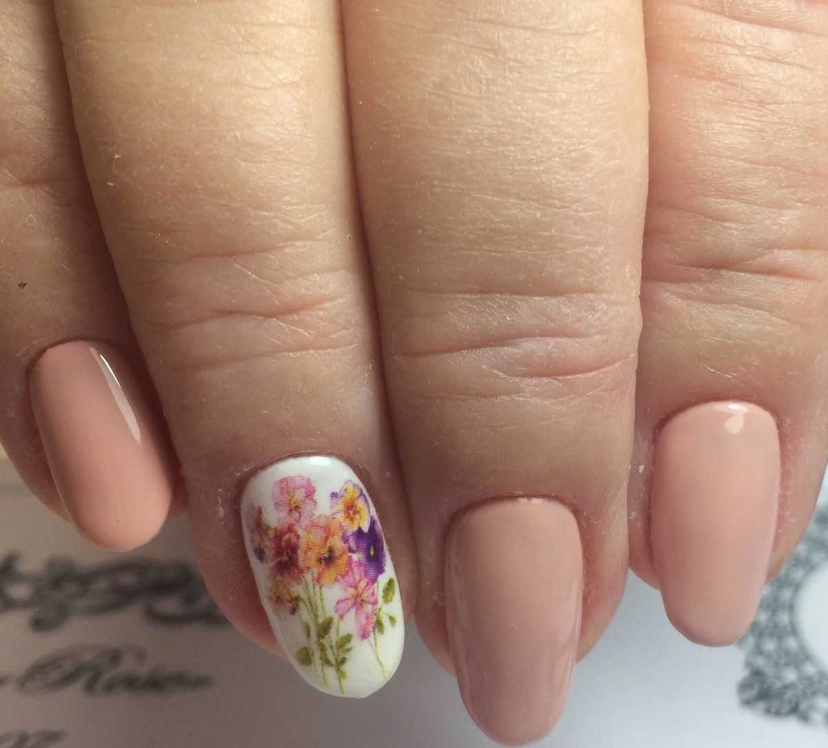Отметим, что наиболее удачно смотрится сочетание нюд в монохроме с рисунком или узором на одном или нескольких ноготках.