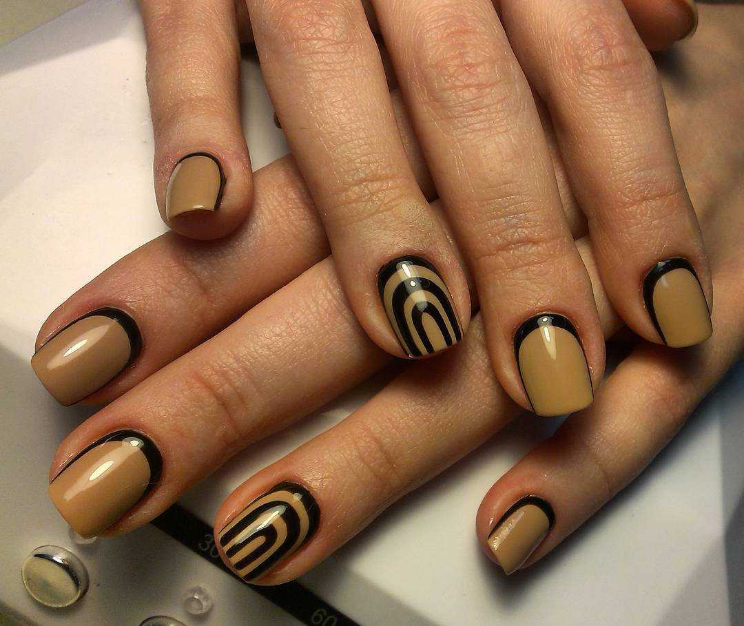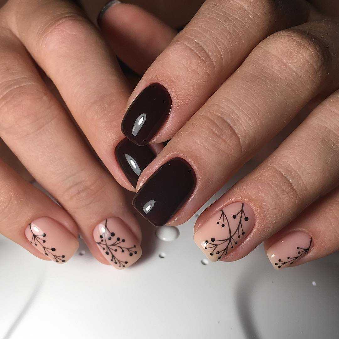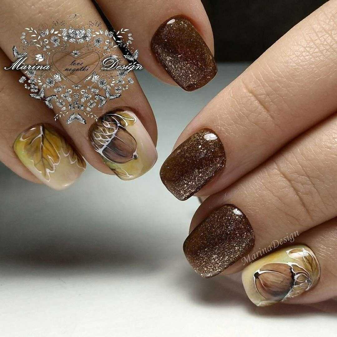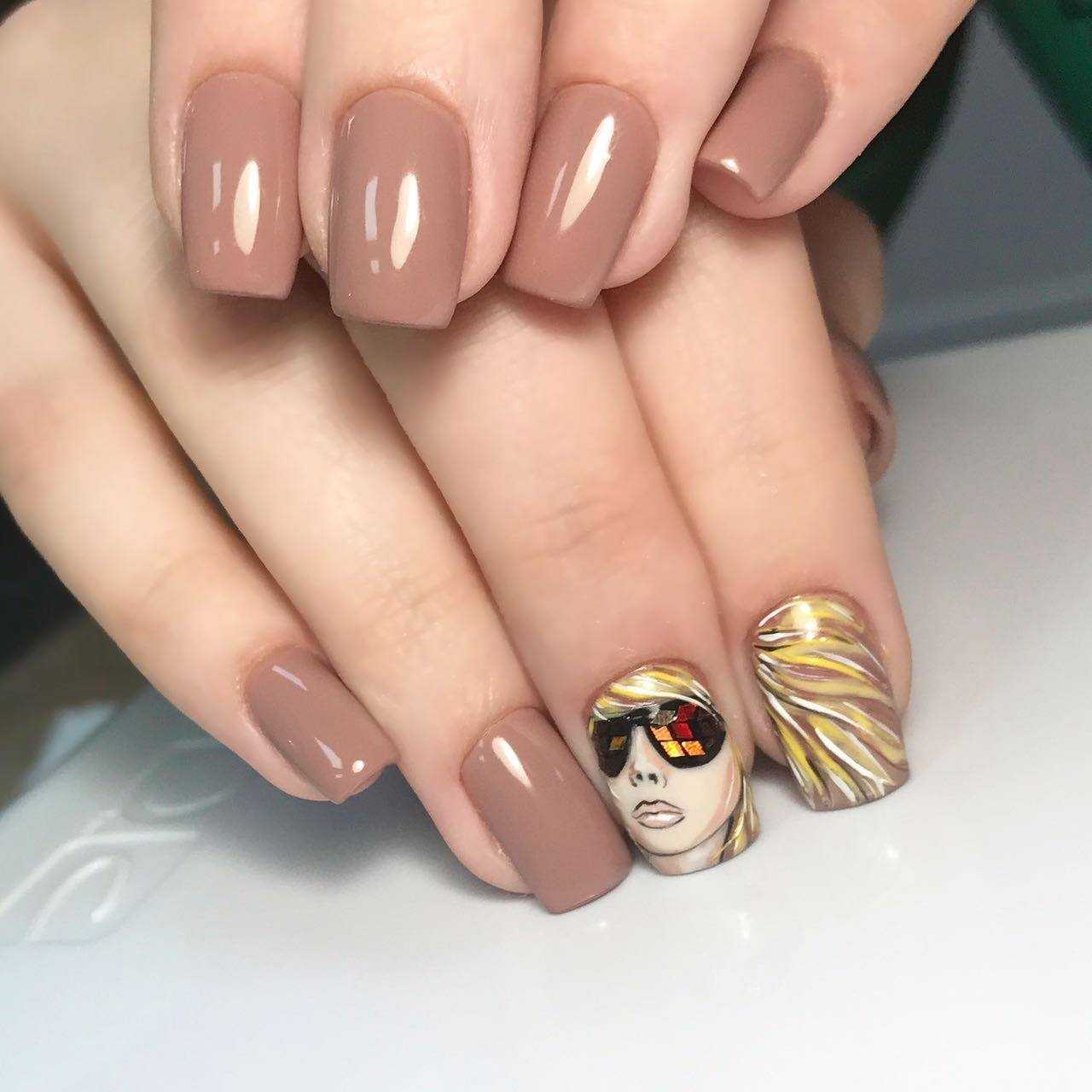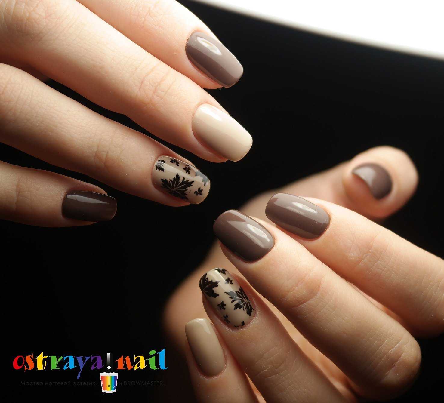 Коричневый маникюр с интересным дизайном и рисунками