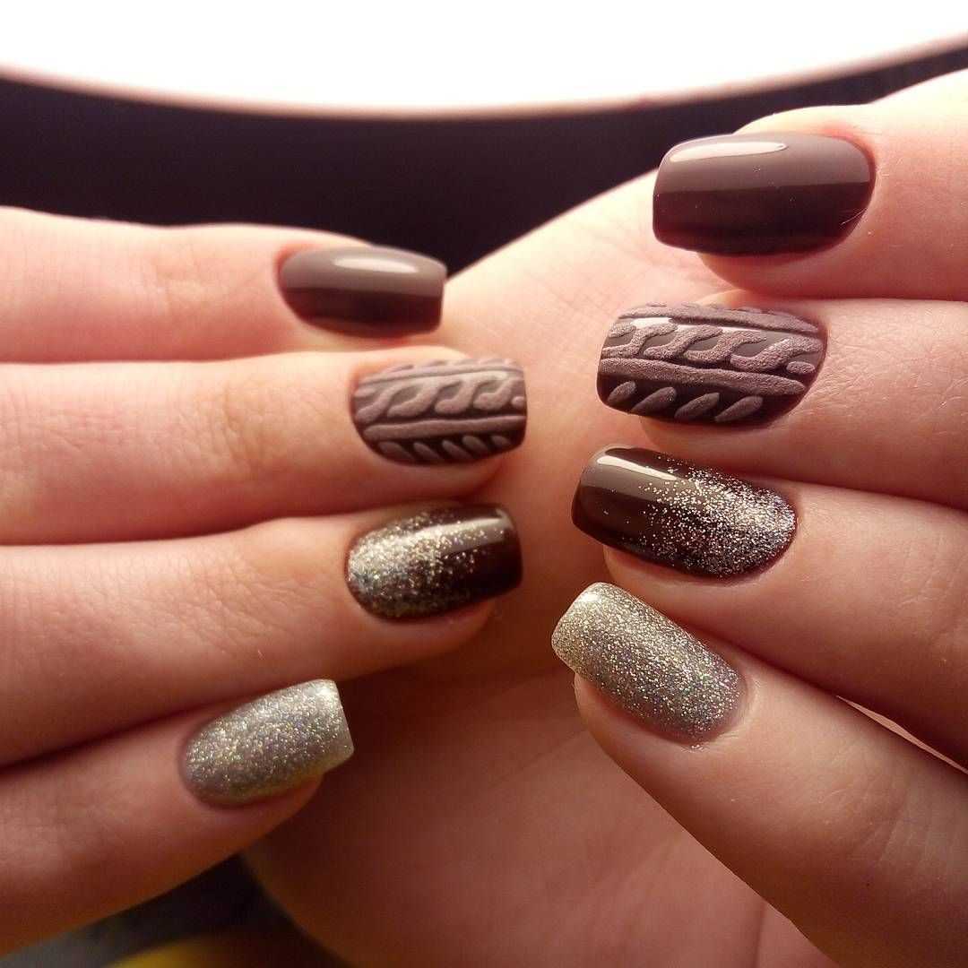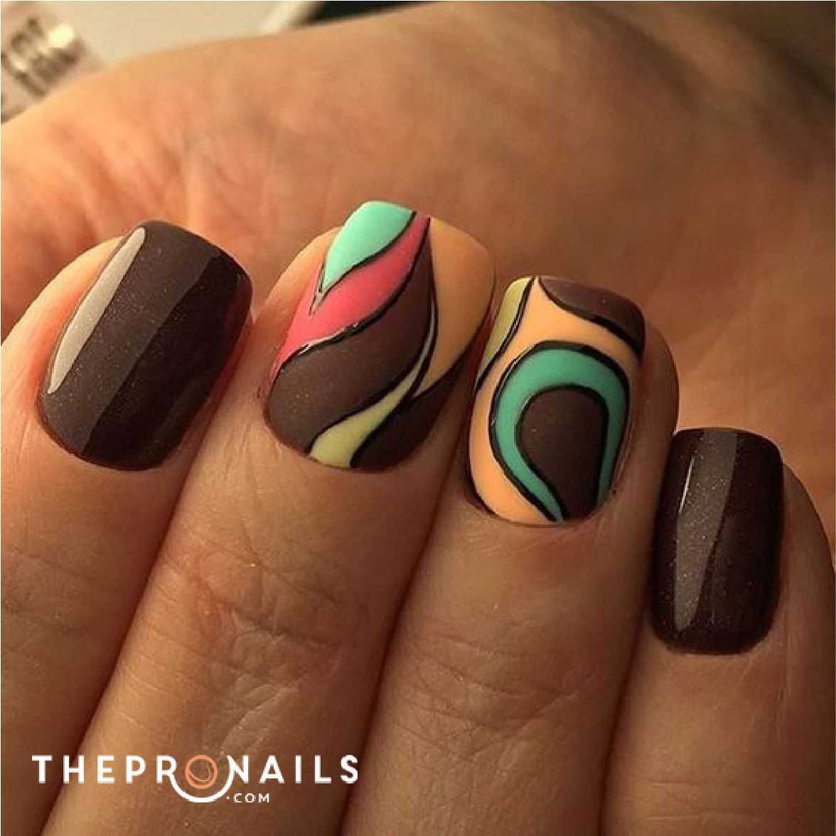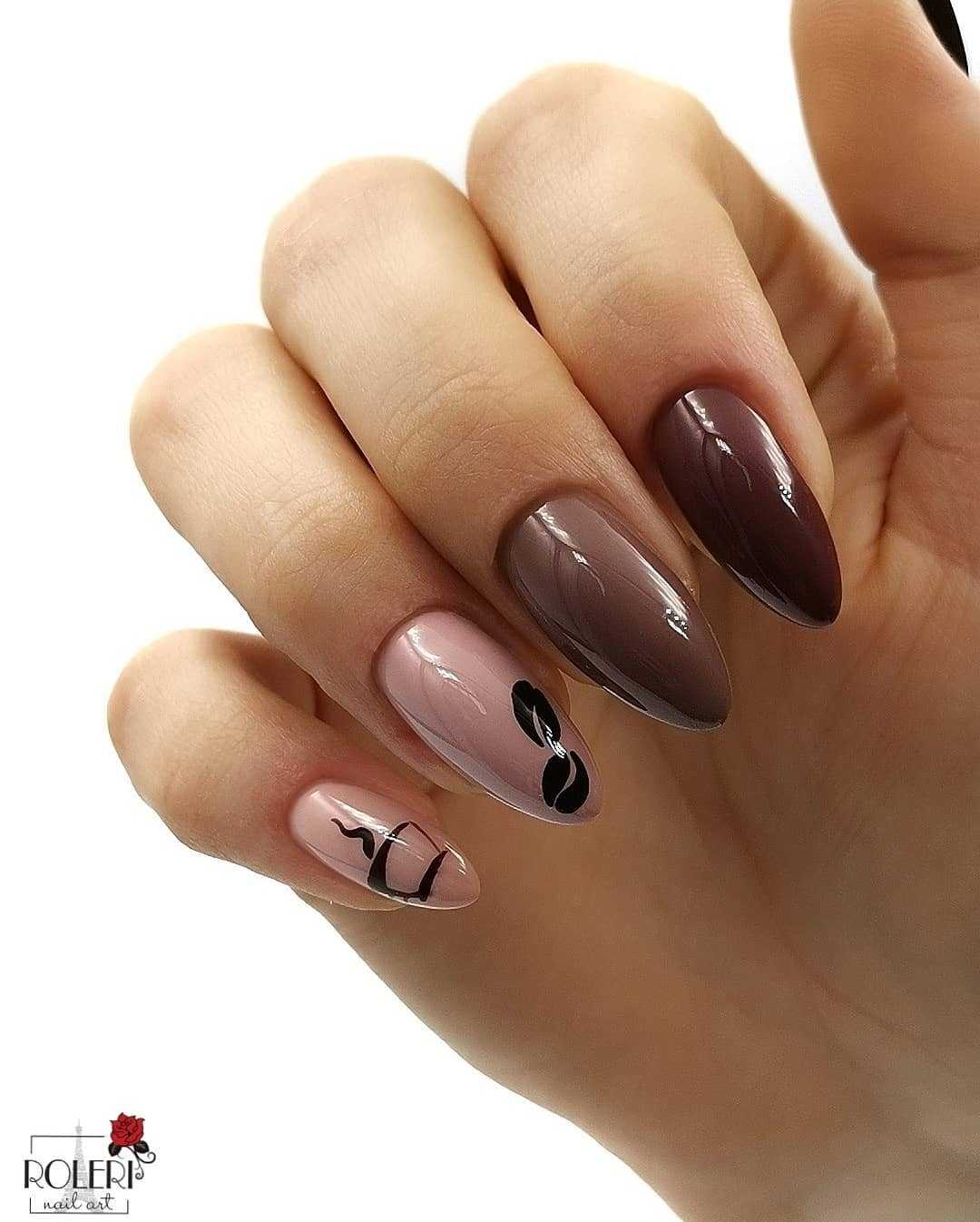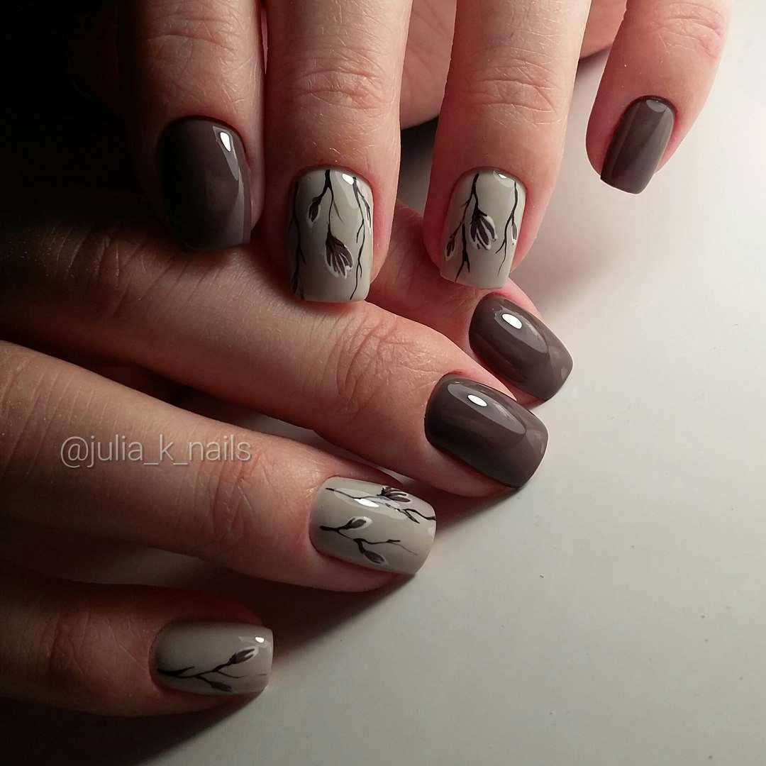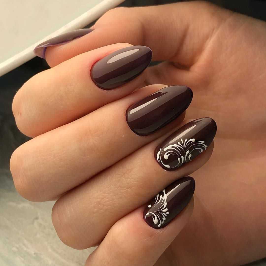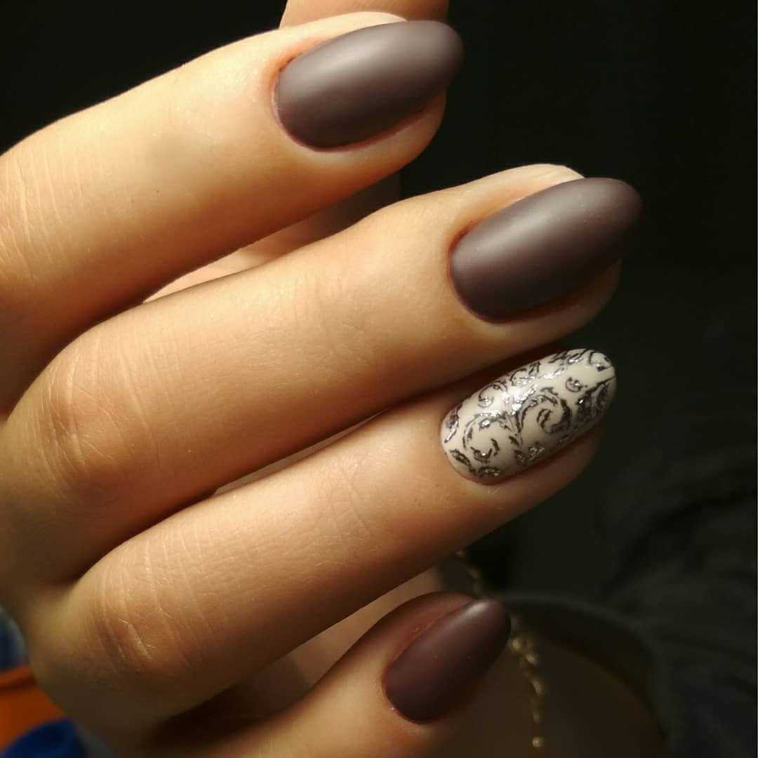 Коричневый маникюр с интересным дизайном и рисунками