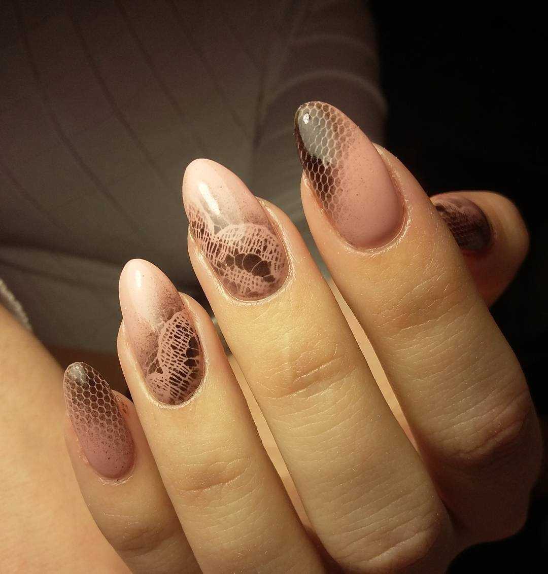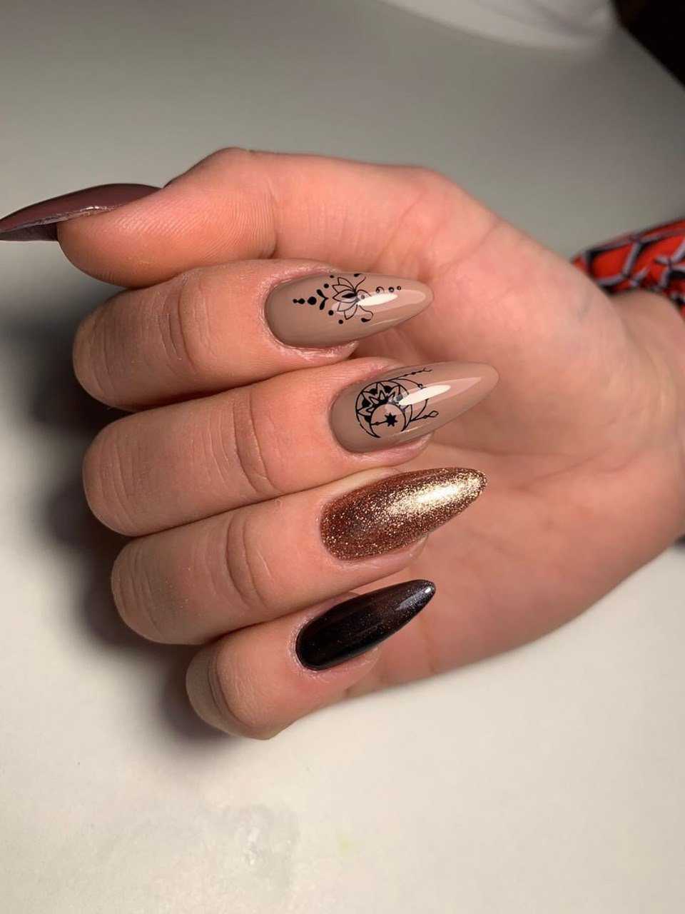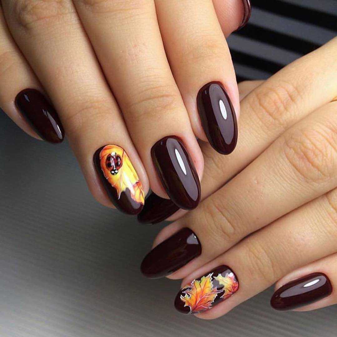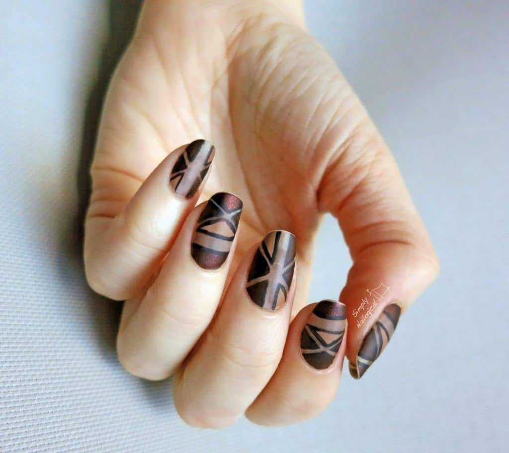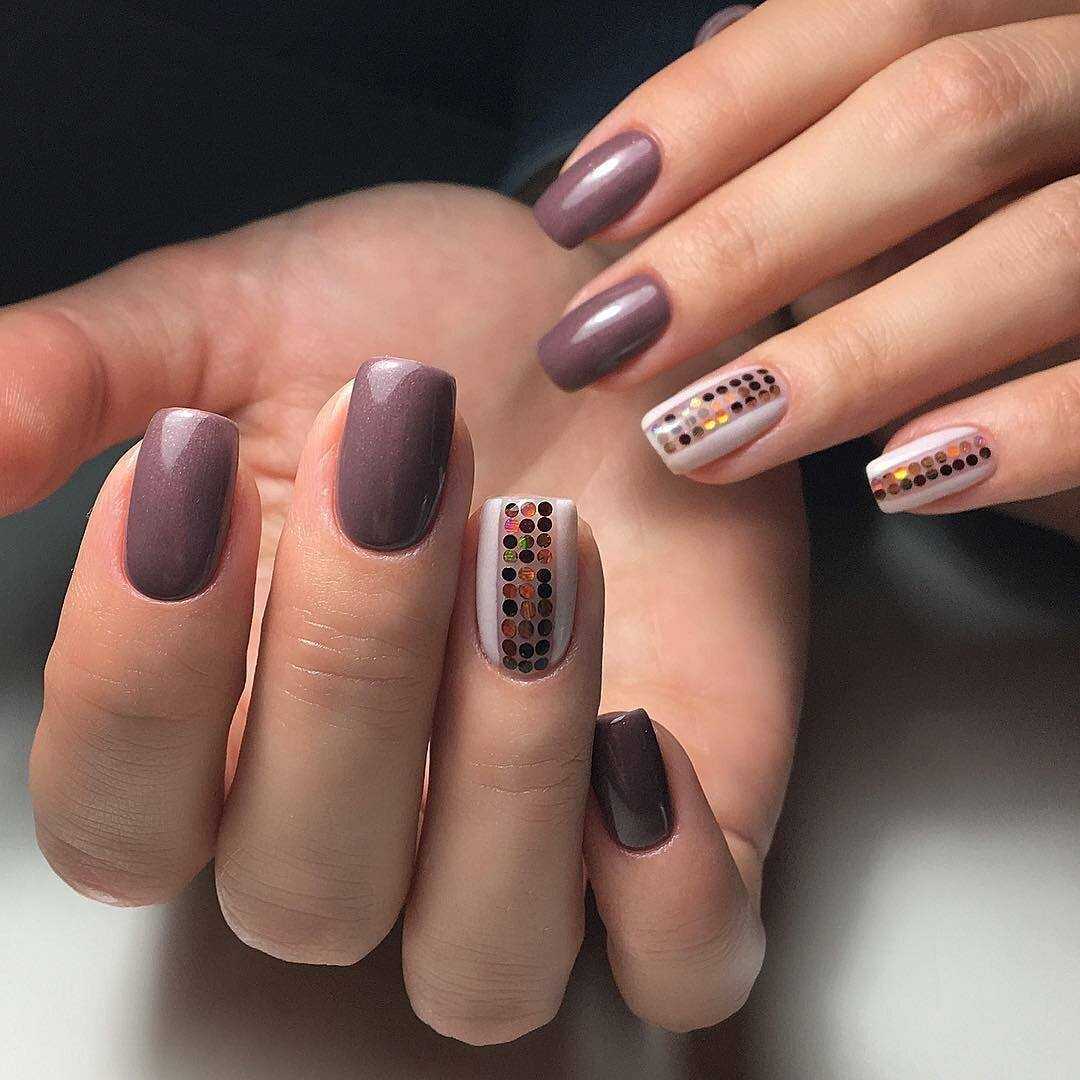 Коричневый маникюр с интересным дизайном и рисунками