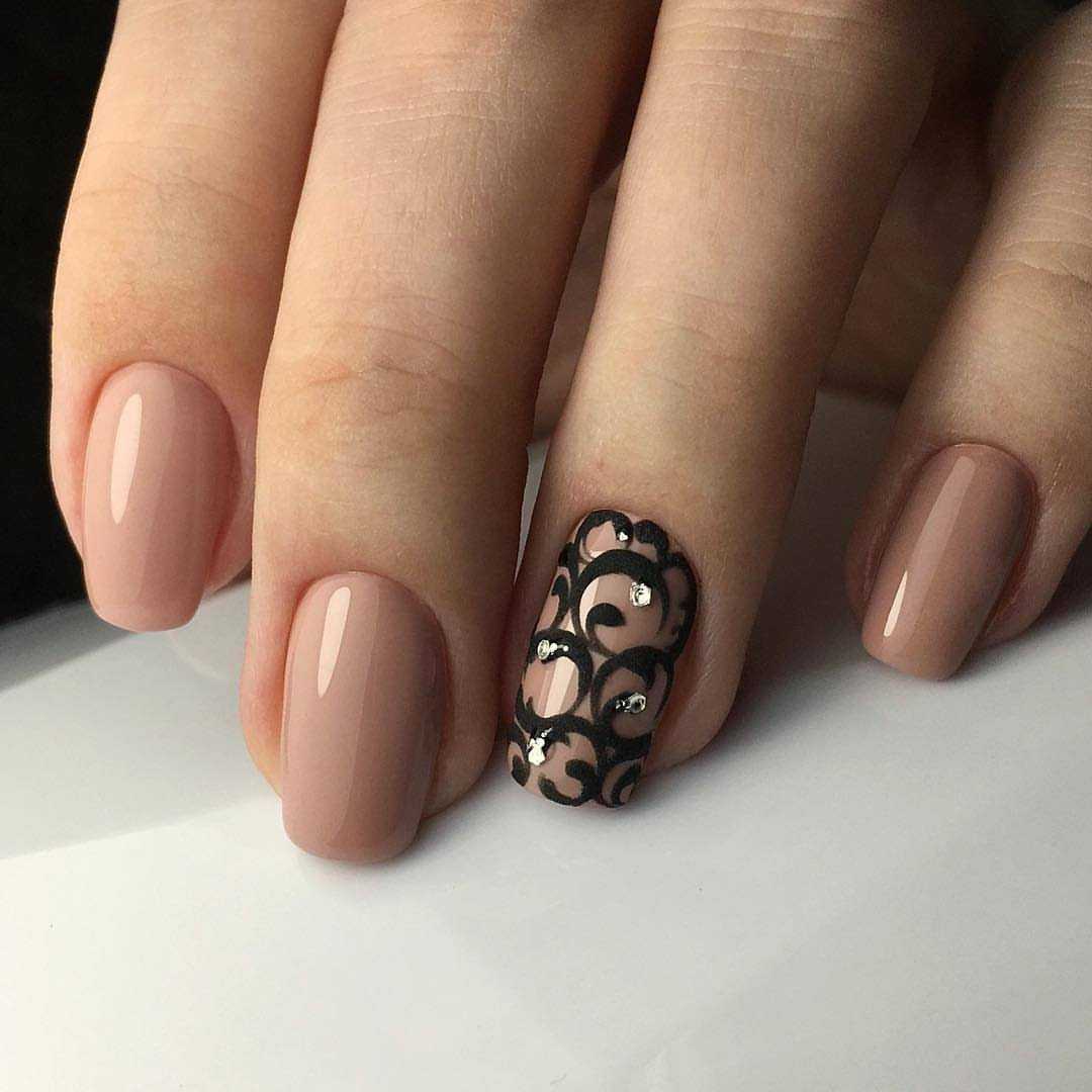 Бежевое покрытие с эффектом влажного блеска – это классический выбор. Оно одновременно выглядит не только красиво, а также дорого и стильно, и универсально будет смотреться на пальчиках студентки, деловой леди или консервативной невесты. Идеальными станут для глянцевого исполнения — телесный, пудровый, жемчужный оттенок, или насыщенные тона — карамельный, пыльная роза, или миндаль. Матовый беж, наоборот, прекрасная альтернатива влажному блеску. Это хорошая возможность сделать выбор в пользу более яркого оттенка. Ведь матовое покрытие всегда выглядит приглушенно. Матовый бежевый маникюр делает ногти более выразительными, и сохраняет целостность дольше, чем глянец. Также матовая структура служит прекрасной базой для выполнения декора, например, велюровыми, кружевными или блестящими элементами.