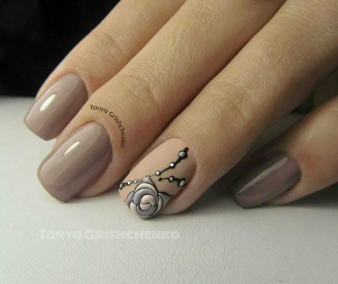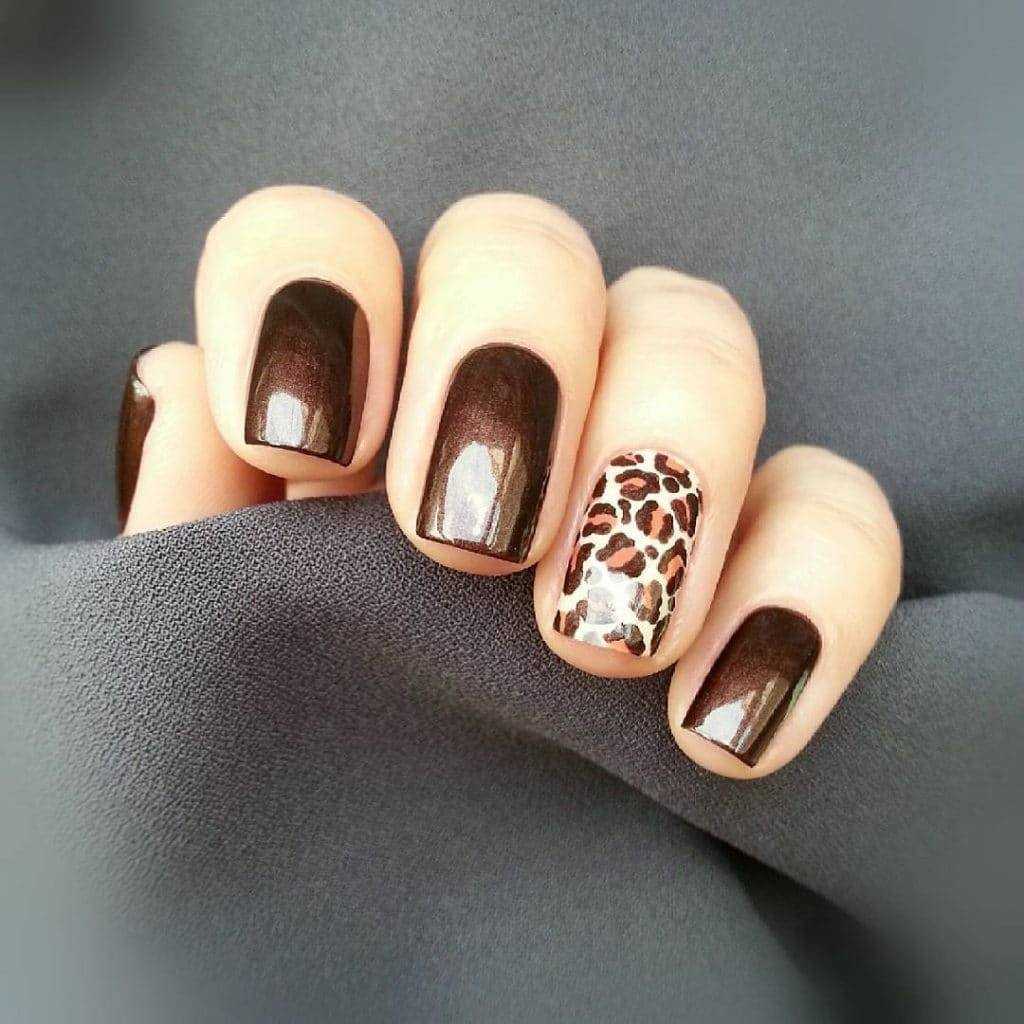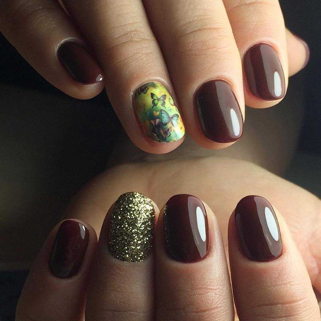 Коричневый маникюр с дизайном на короткие ногти