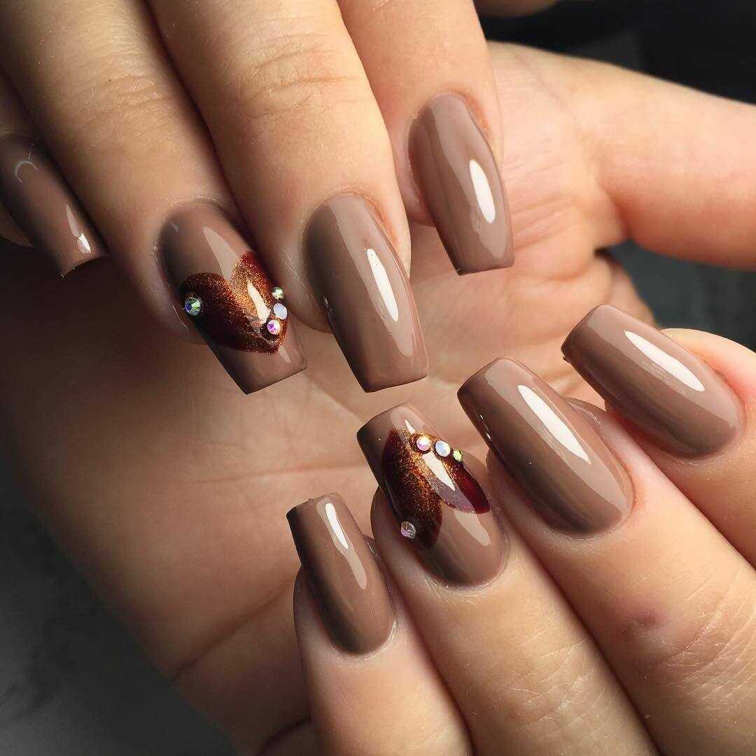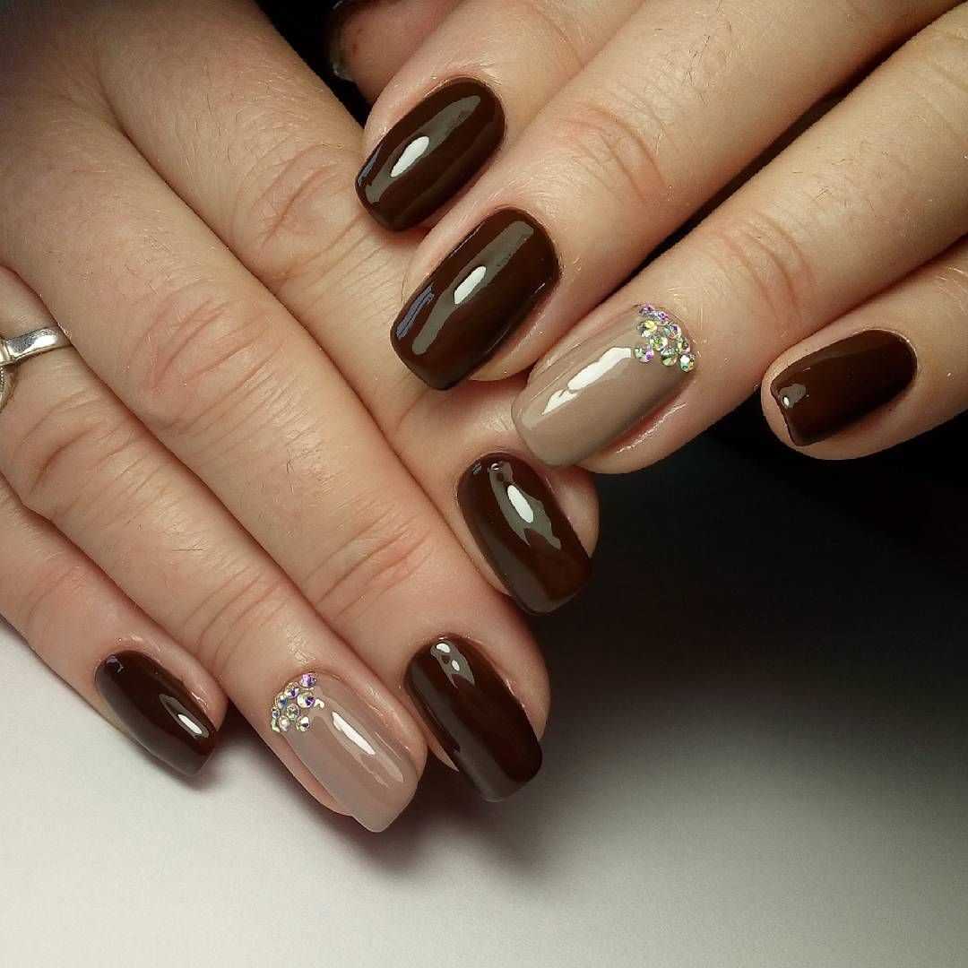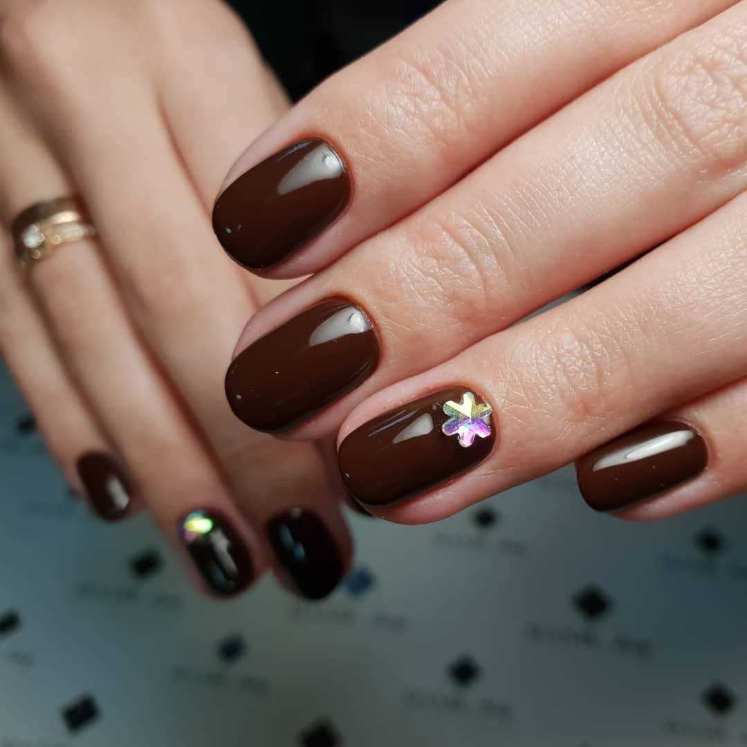 КОРИЧНЕВЫЙ МАНИКЮР С ДЕКОРОМ СТРАЗАМИ