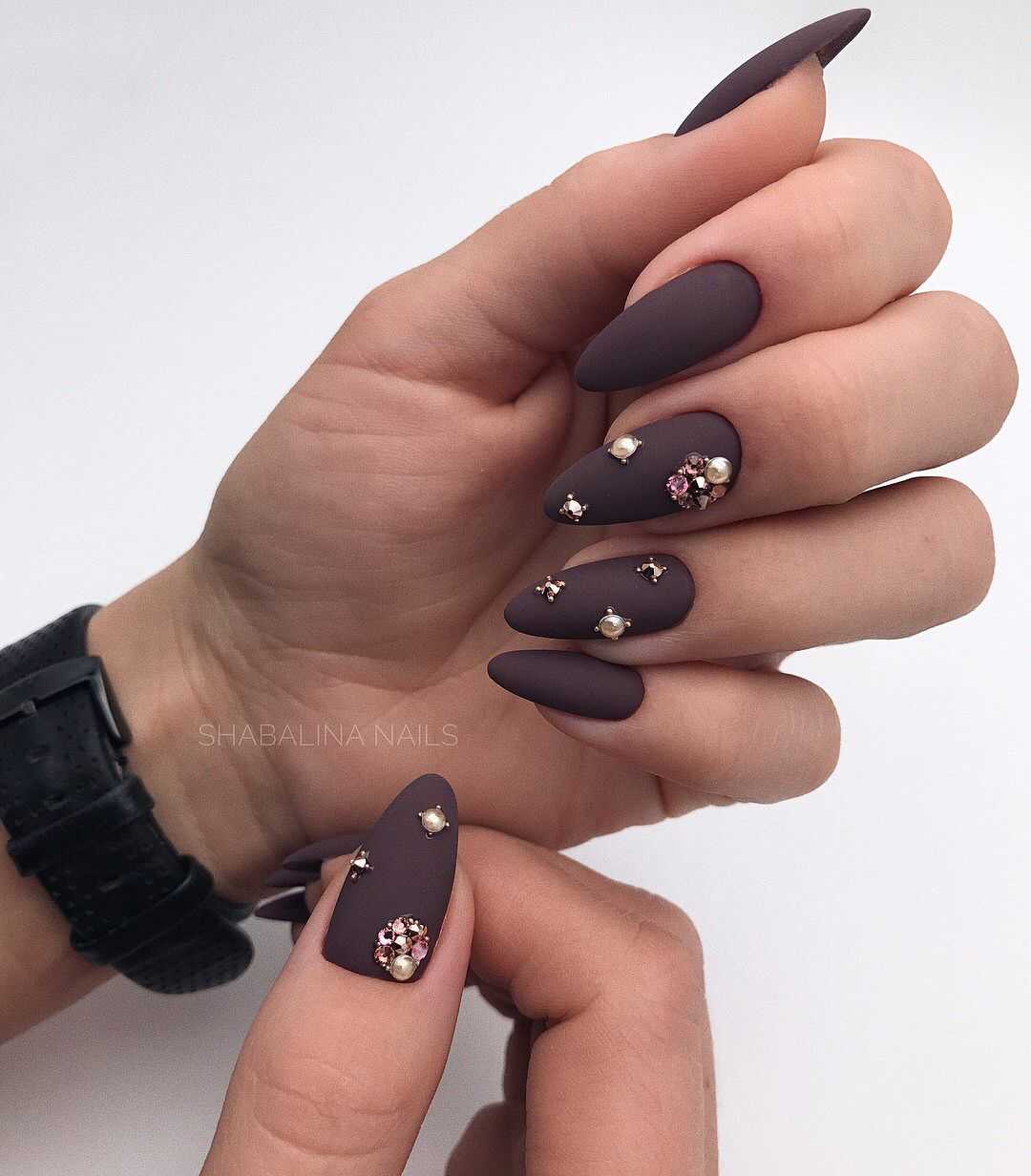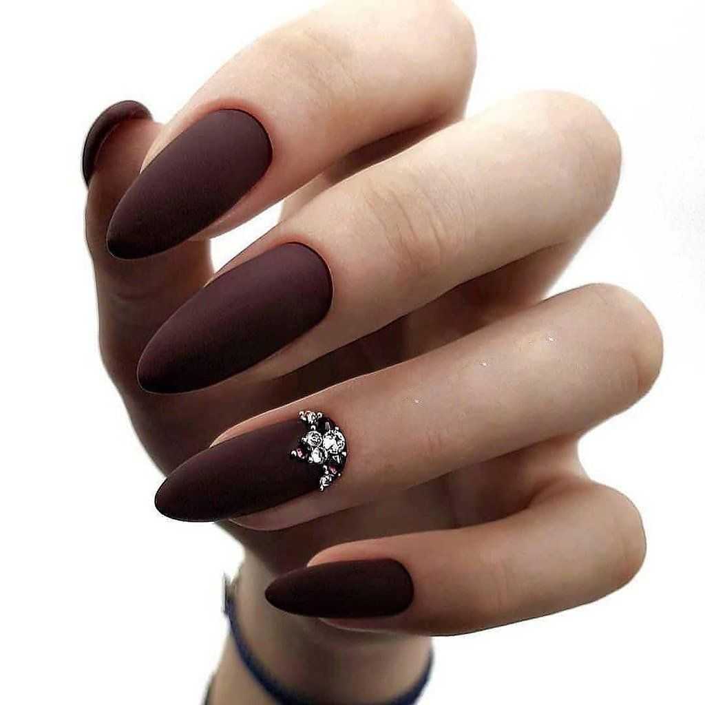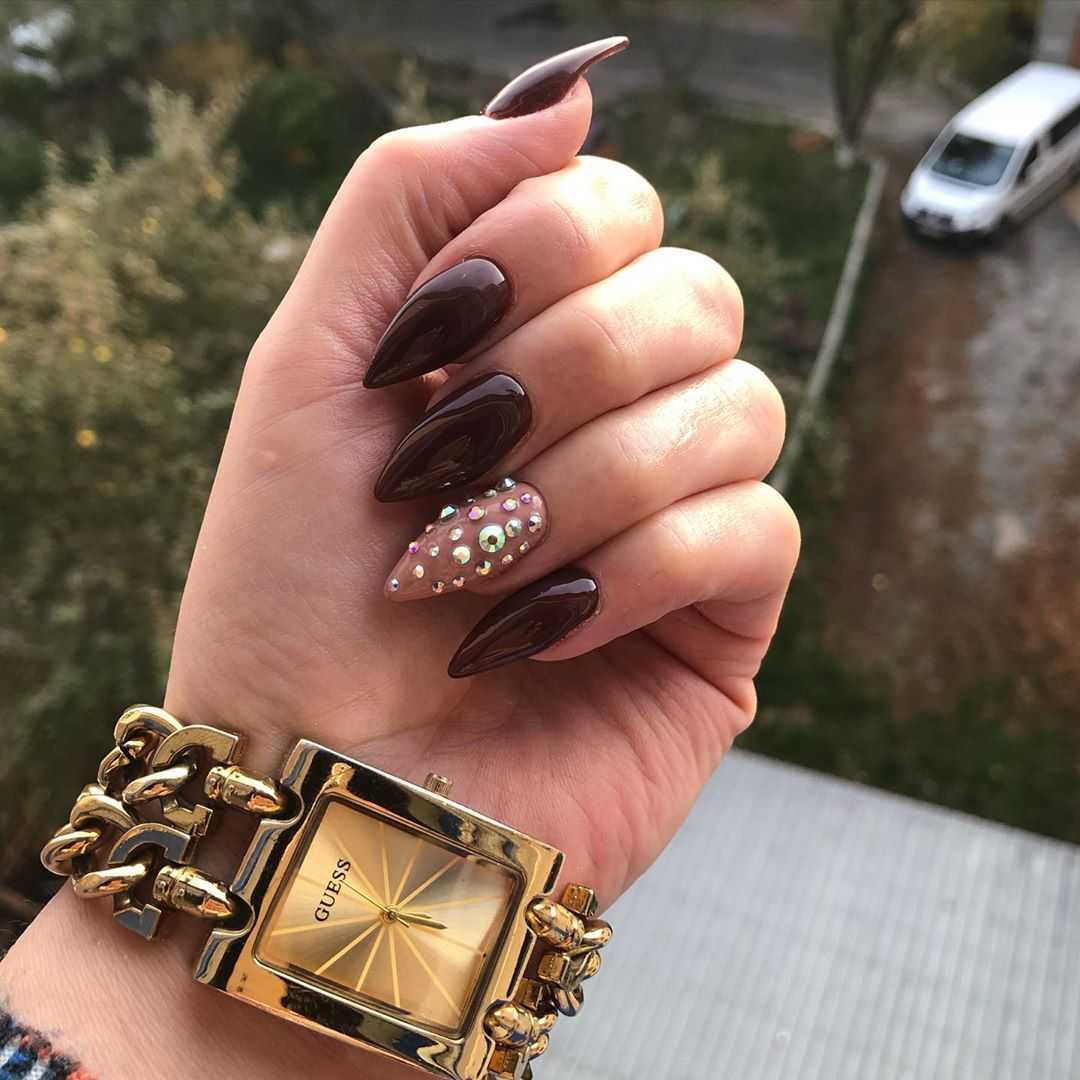 КОРИЧНЕВЫЙ МАНИКЮР С ДЕКОРОМ СТРАЗАМИ
