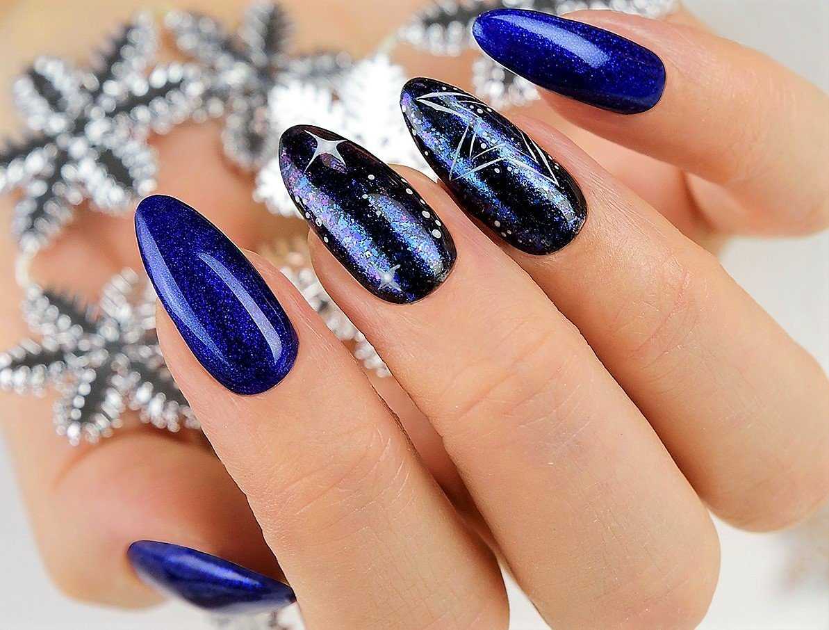 Мы признаем, что не можем оторваться от ярких звезд этого примера и уже ищем, где его повторить. Отдельно хочется отметить удачное расположение «середины» серебристого дизайна. Ногти снова отрастут, но маникюр по-прежнему будет выглядеть свежо, по крайней мере, больше месяца.