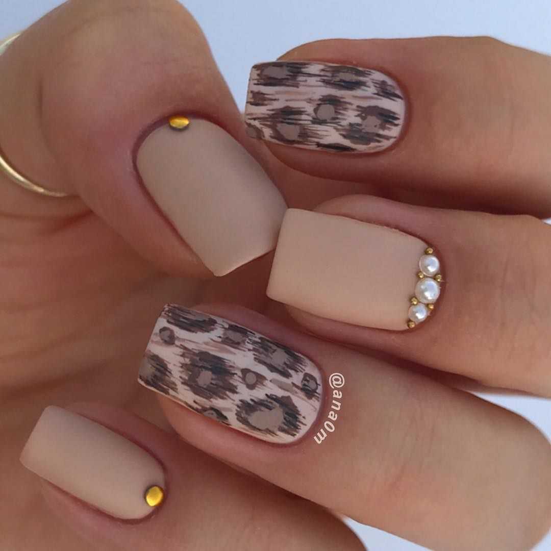 Тренд на однотонные матовые покрытия применим ко всем оттенкам модного маникюра, в том числе и к коричневым. В моде пудровый однотонный маникюр, выполненный с применением акрилового песка, который после присыпки приобретает цвет гель-лака. Актуальны объемные геометрические узоры и вензеля на светло-коричневом гель-лаке. Дополнительно можно декорировать ногти золотом.