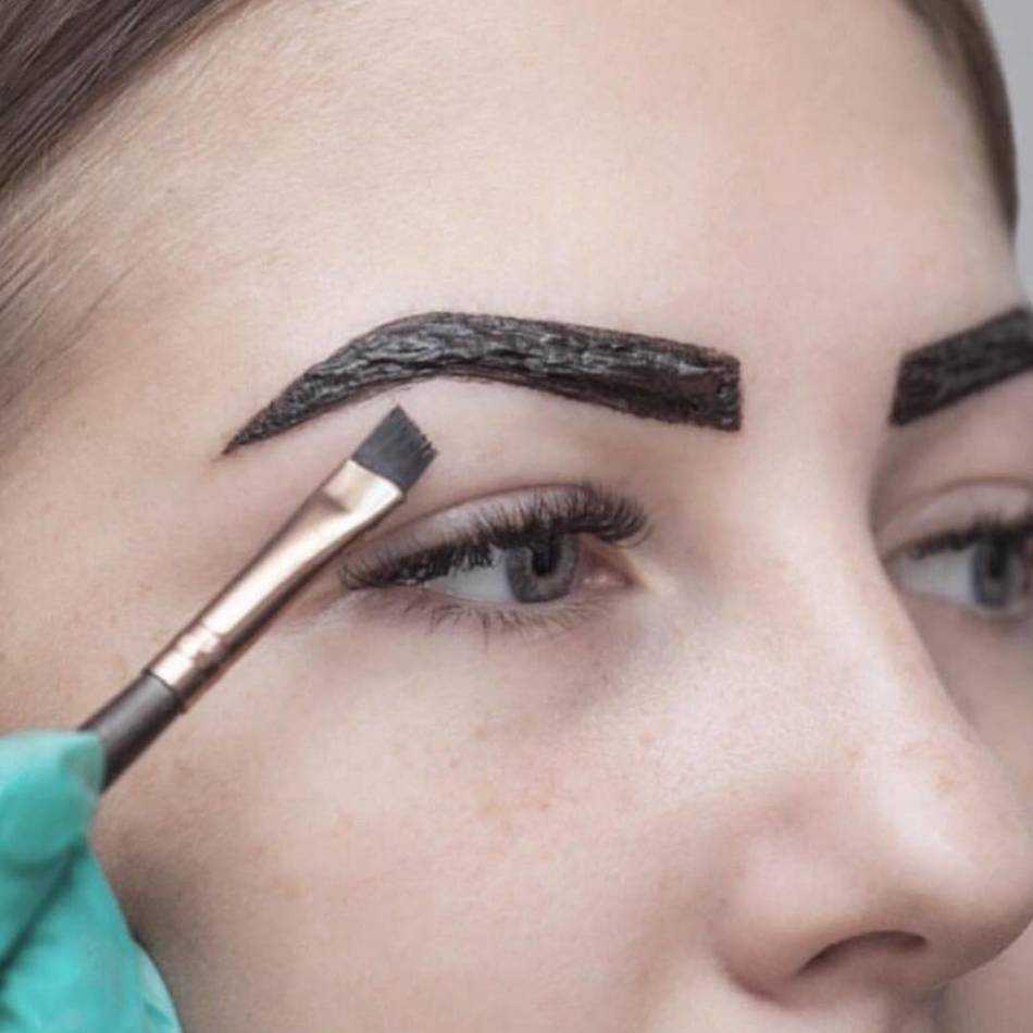 Чтобы кожа вокруг брови не окрасилась, нужно нанести на неё жирный крем. Так цветной краситель не будет вступать в реакцию с эпидермисом.