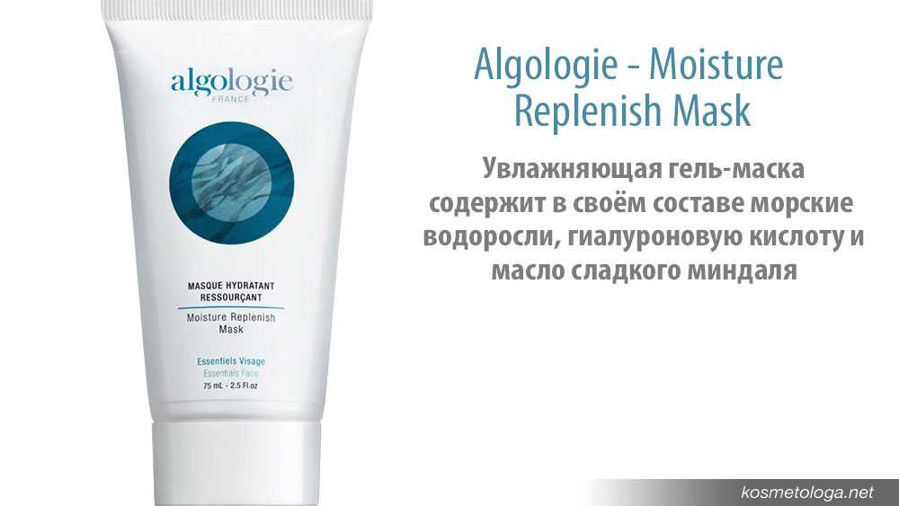 Из моих фаворитов могу назвать увлажняющую гель-маску от Algologie — Moisture Replenish Mask. Эта маска содержит в своём составе морские водоросли, гиалуроновую кислоту и масло сладкого миндаля. Она быстро восполняет дефицит воды, и незаменима в ситуациях, когда кожа интенсивно теряет влагу — после авиаперелёта или длительного пребывания на солнце, поэтому я всегда беру такую маску с собой в дорогу.