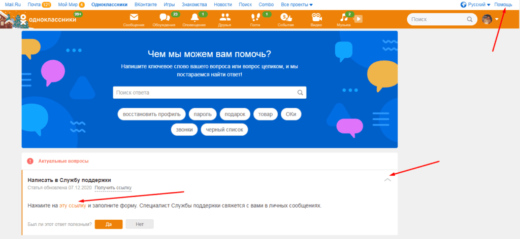 Нажмите сюда, чтобы обратиться в службу поддержки и рассказать о мошенничестве в «Одноклассниках»